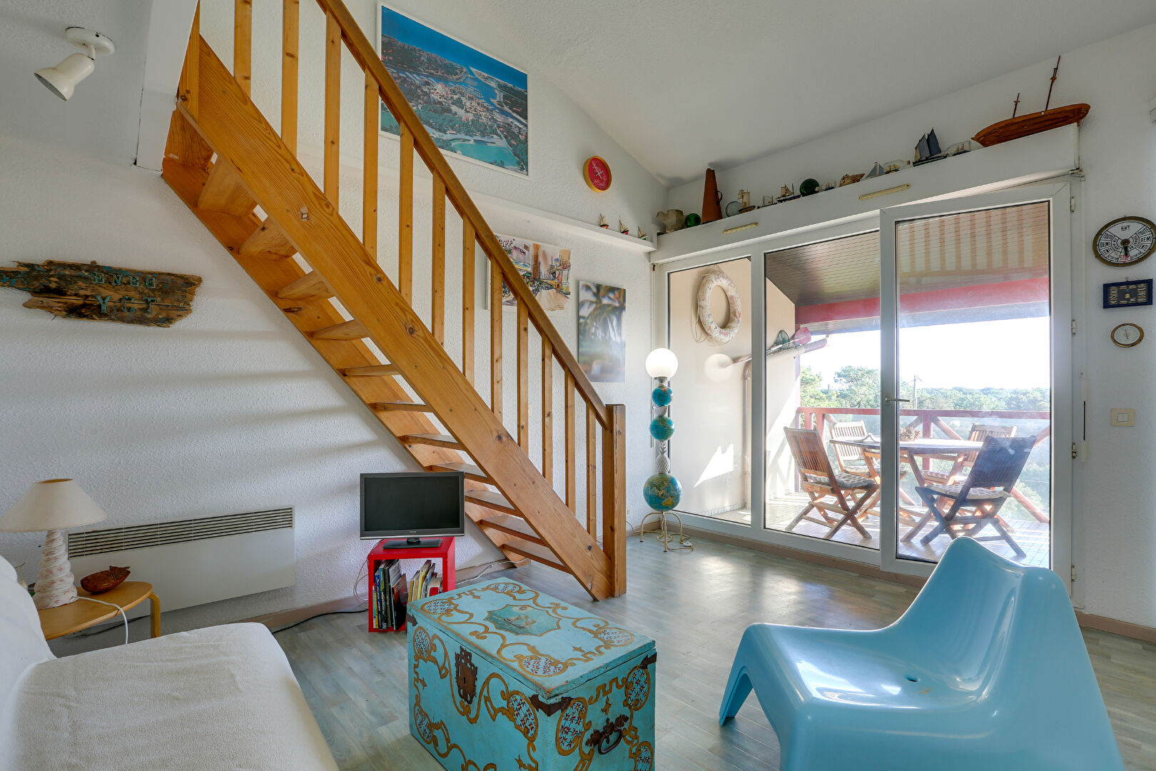 Au 3ème et dernier étage d'une résidence sécurisée avec ascenseur et piscine, appartement lumineux de 37 m² avec mezzanine de 10 m², offrant une très belle vue dégagée sur la pinède et les Pyrénées.