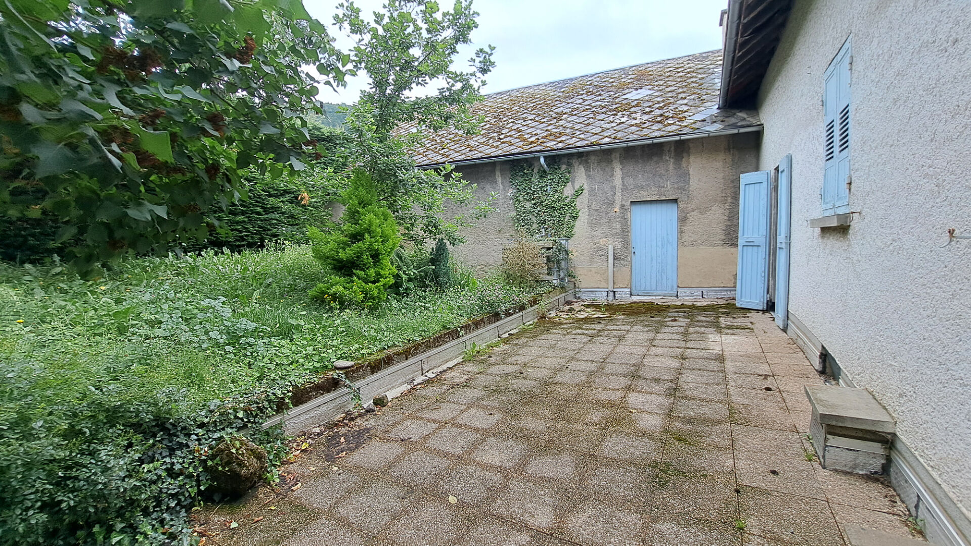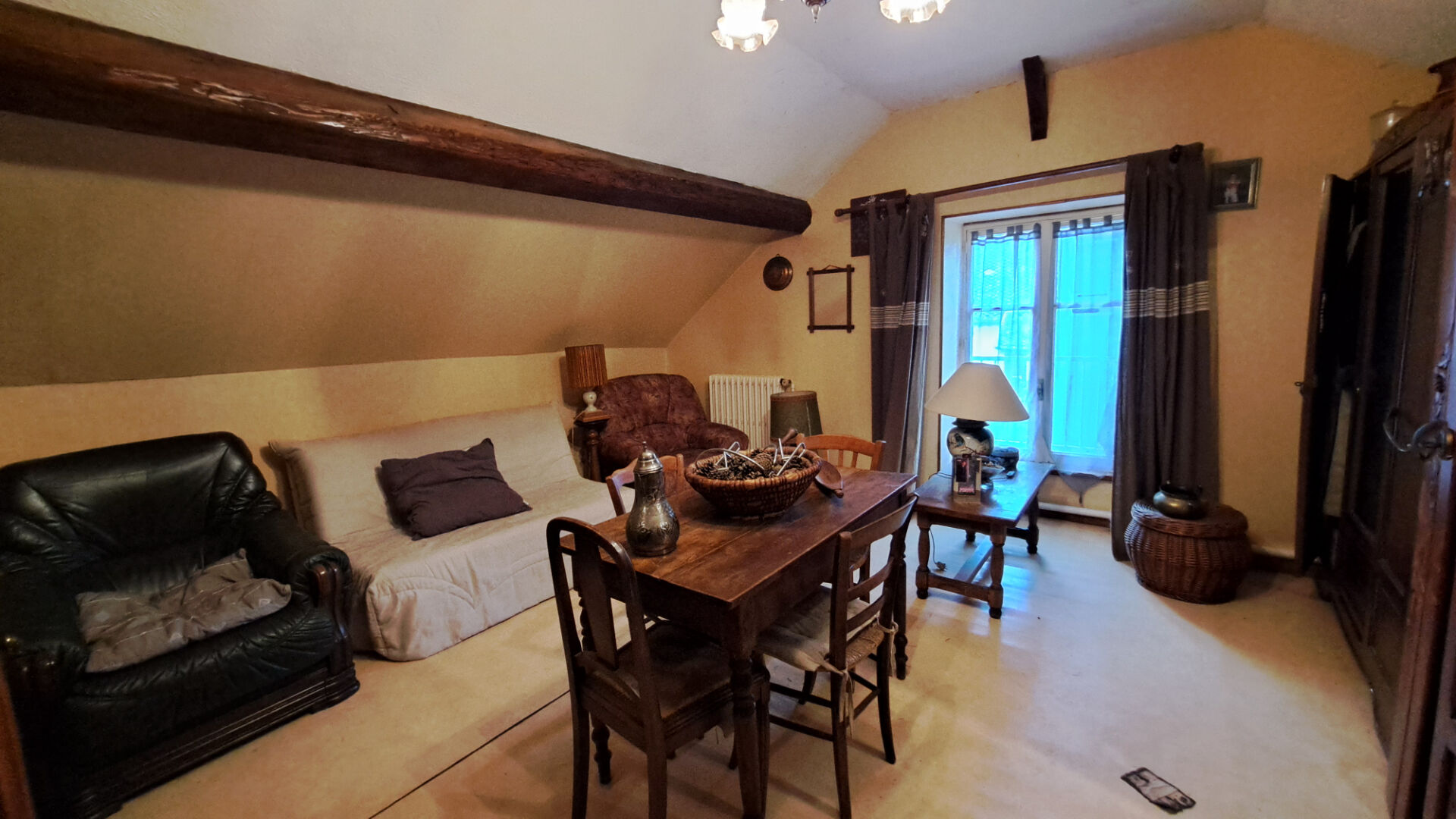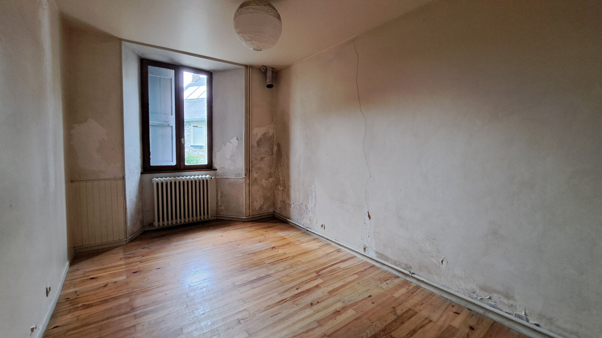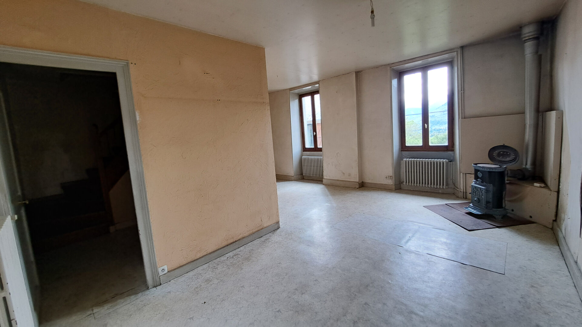 Le deuxième logement vide de locataire accessible par le jardin et la grande cour à l'étage, composé d'une entrée donnant directement dans le salon salle à manger, cuisine, salle de douche et WC, débarras, accès aux combles par l'escalier dans la cuisine. En rez-de-chaussée, dégagement, deux chambres, garage avec chaudière électrique et ballon ECS.