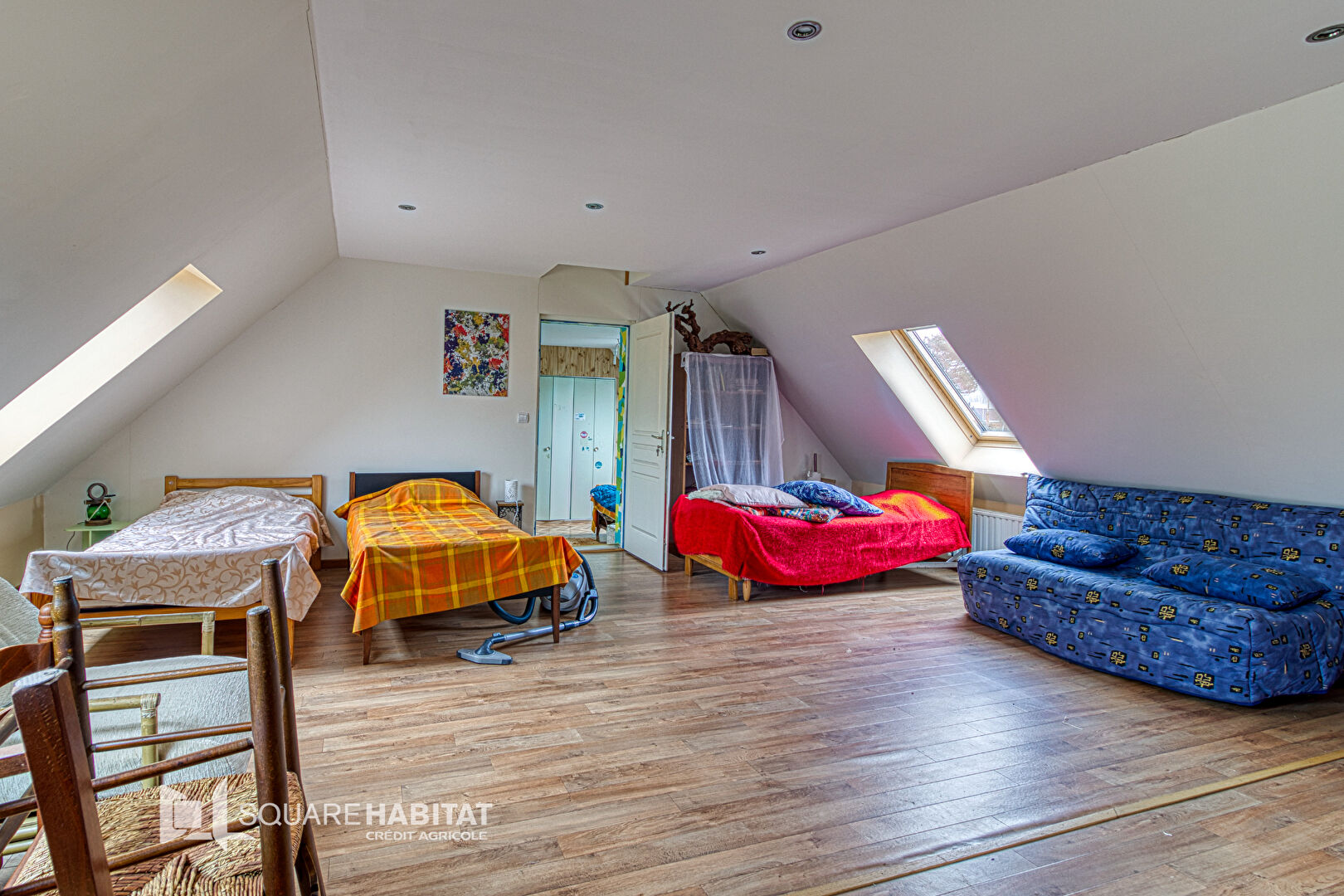 Au premier étage : un palier desservant 4 chambres, dont une d'environ 38m², salle de bain avec WC, placard de rangement