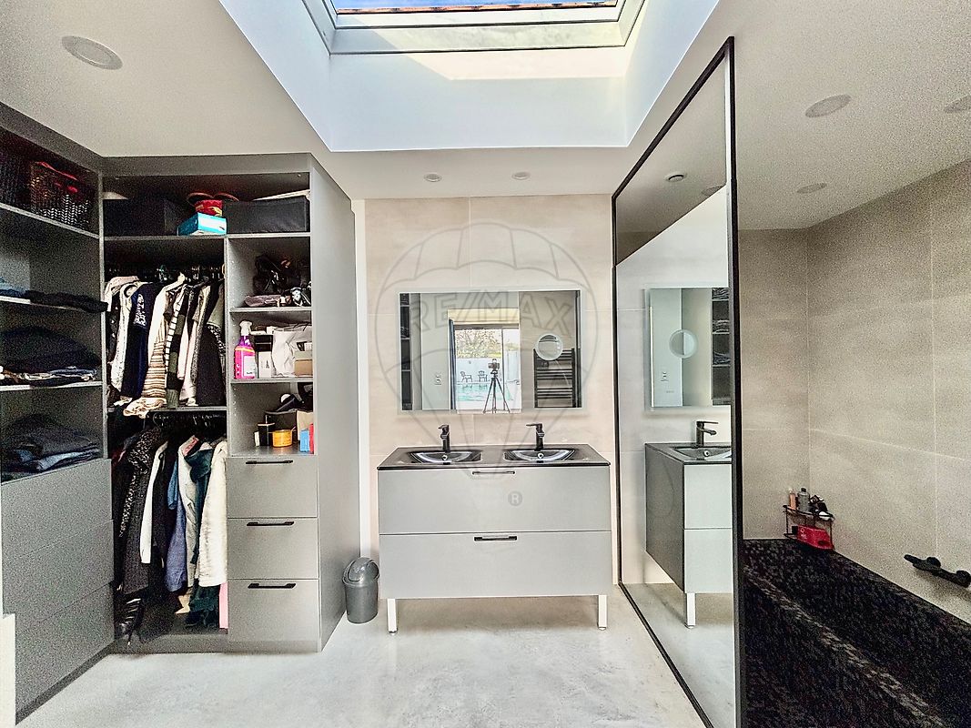 <p style="text-align:start;">Sur ce même niveau se trouvent également les <strong>espaces nuit</strong>, composés d’une <strong>suite parentale master</strong>, pensée comme un espace intime et indépendant, disposant d’un <strong>dressing</strong>, d’une <strong>salle de bains avec double baignoire</strong>, ainsi que d’un <strong>accès direct à la terrasse et au jardin</strong>. Deux autres <strong>suites</strong>, chacune équipée de sa <strong>salle d’eau et de son dressing</strong>, complètent ce niveau.</p>