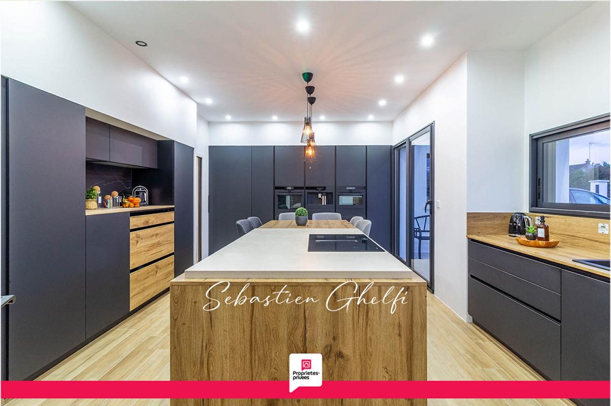 comprenant : vaste entrée avec placards, grand salon séjour ouvrant sur belle cuisine aménagée et équipée, cellier, buanderie, wc avec lave-mains, dégagement, 4 chambres (25.4,15.2,15.2,13.7m²) dont 1 parentale avec dressing et salle d'eau , wc , grande salle de bain avec baignoire et douche.