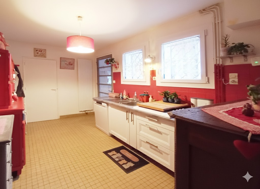 Cette maison propose des caractéristiques étonnantes: deux pièces de vie (dont l'une peut devenir une chambre) et deux cuisines puisqu'une transformation du garage a permis l'implantation d'une cuisine récente mais que la cuisine d'origine a pour l'instant été conservée.