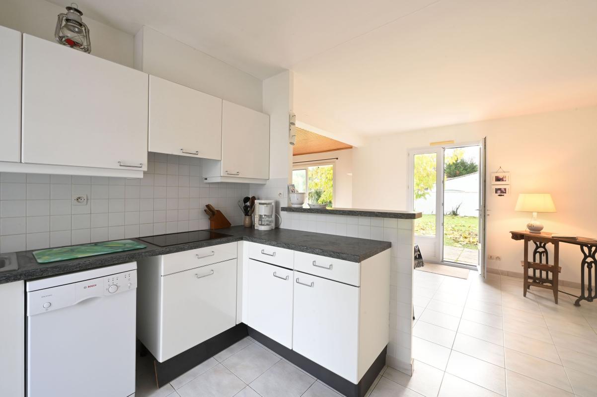 Immobilier Sainte-Marie de Ré, située à deux pas de la place des Tilleuls, belle propriété sur plus de 800 m² de parcelle, trois chambres dont une en rdc avec salle de bain privative, grande pièce de vie avec poele à bois, lumineuse et spacieuse, elle possède également un grand garage et de nombreux stationnements sur la parcelle.