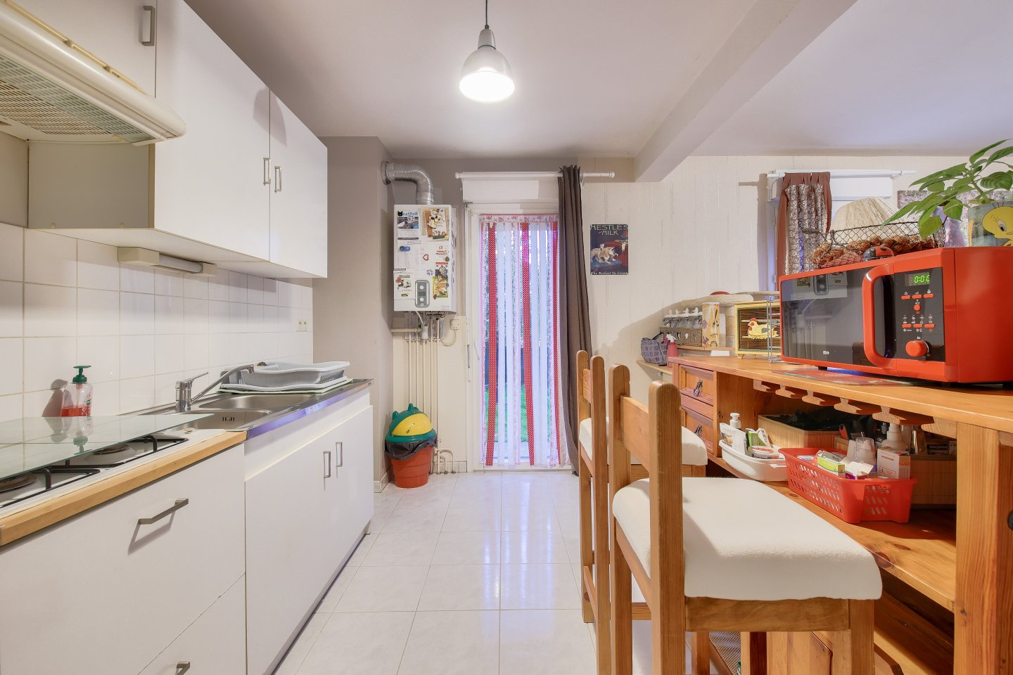 Il vous offre une belle pièce de vie ouvrant sur sa terrasse et son jardinet.