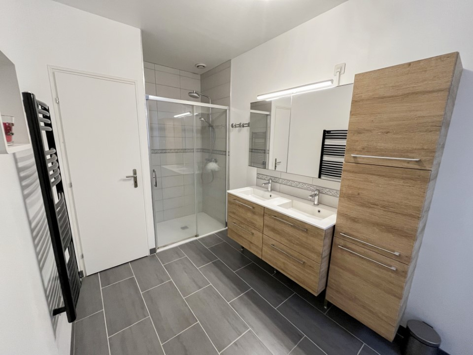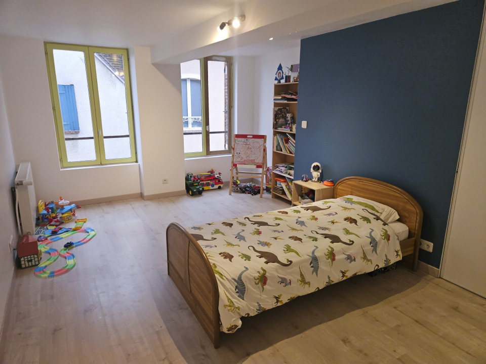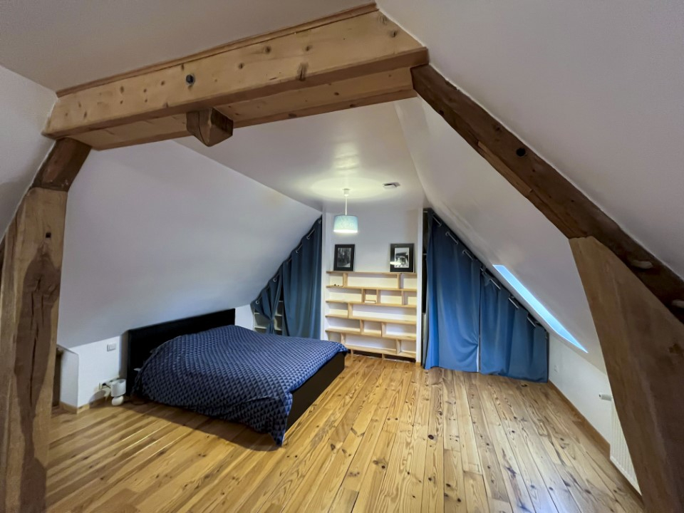 Au premier étage, un palier dessert deux belles chambres aux volumes confortables, ainsi qu'une salle de bains avec WC, formant un espace nuit parfaitement organisé.