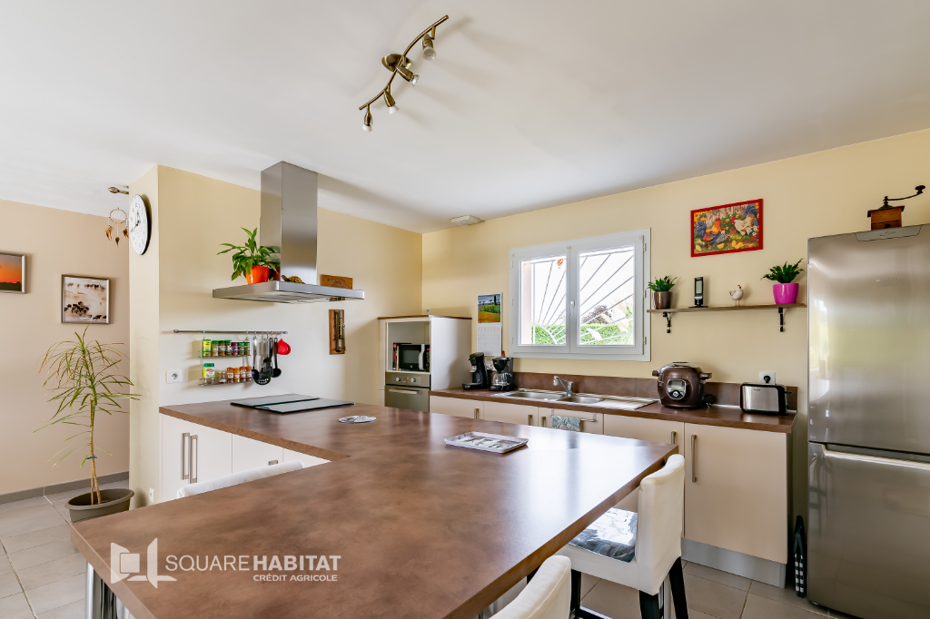 Vous serez séduit par la qualité de prestation de la maison et des beaux volumes,. Comprenant: Une entrée, avec dressing, une superbe cuisine équipée ouverte sur vaste séjour offrant une vue sur la campagne, une salle de bains avec douche, 3 chambres , un cellier, un garage. Profiter pleinement du jardin clos de 1500 m² et de la terrasse très bien exposée au sud pour des repas entre amis.