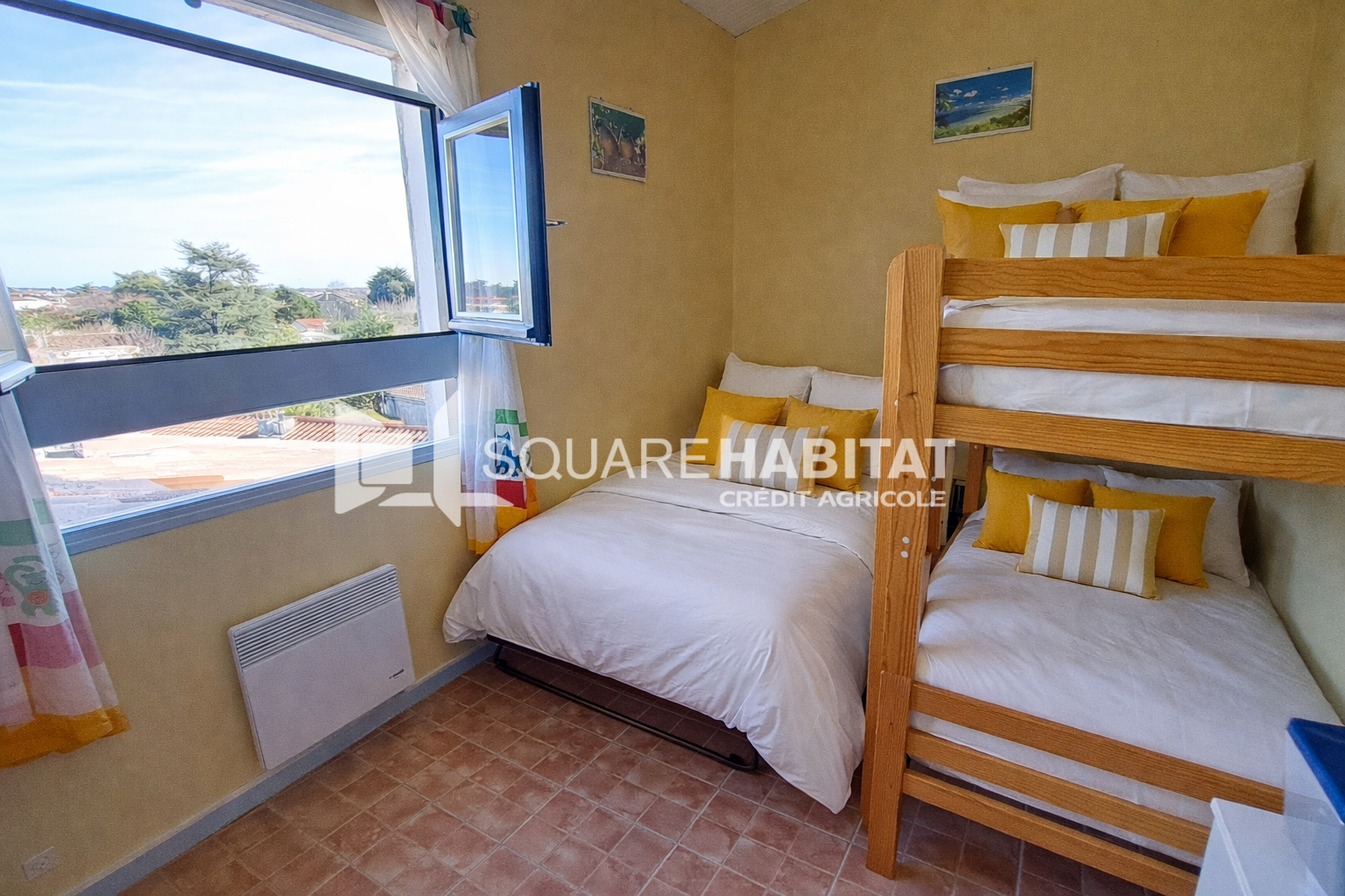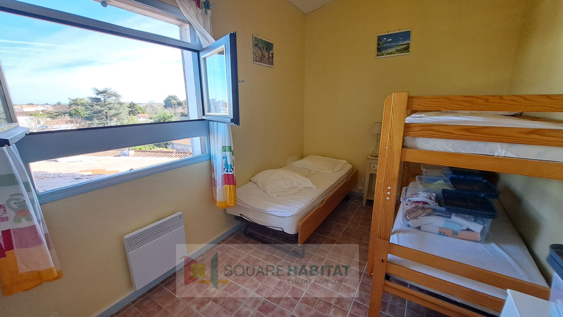 À l'étage, vous trouverez une seconde chambre et une salle d'eau, offrant un espace nuit