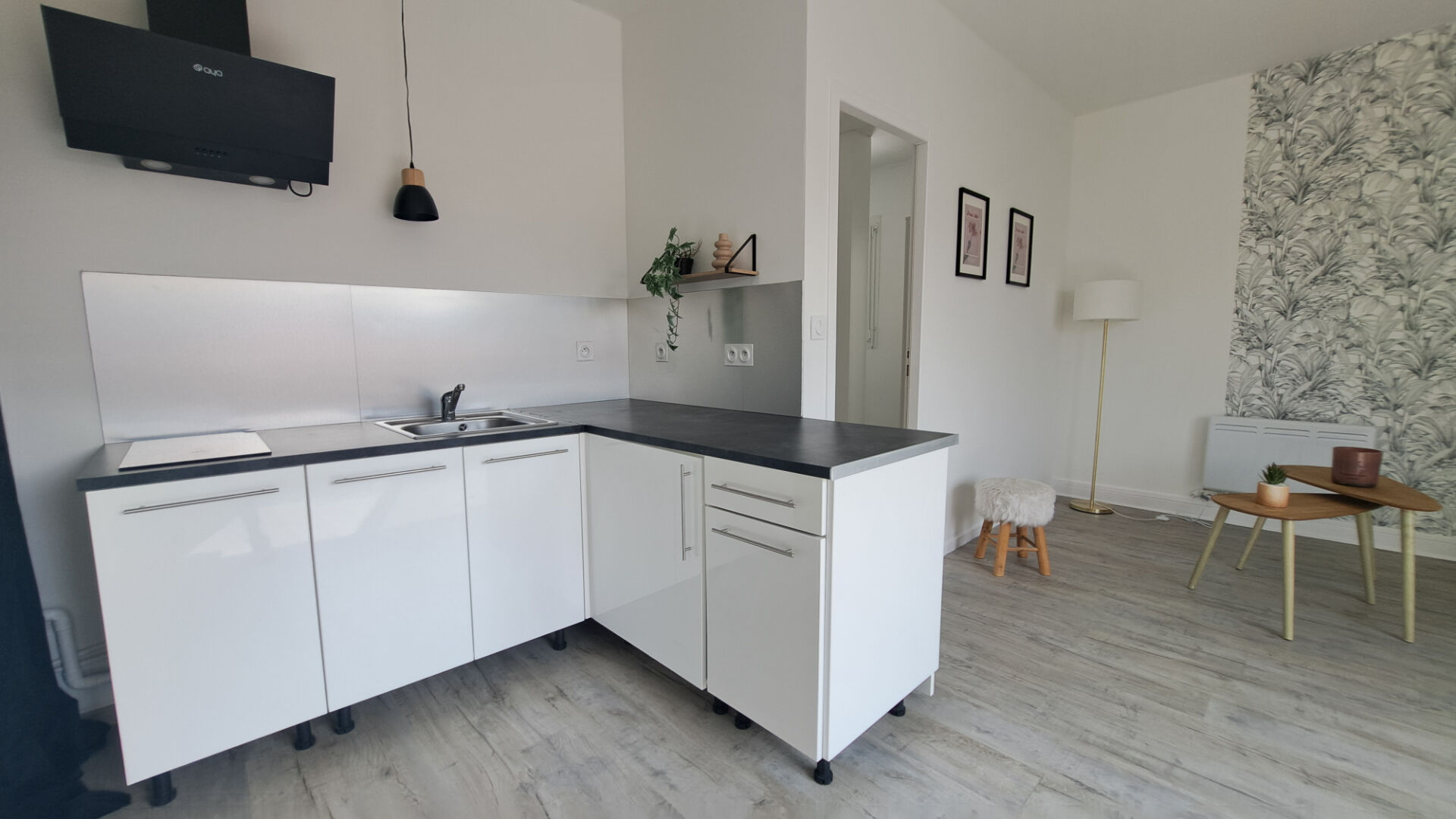 Il comprend une belle pièce de vie lumineuse avec cuisine ouverte et rangements, une chambre avec salle d'eau/wc.