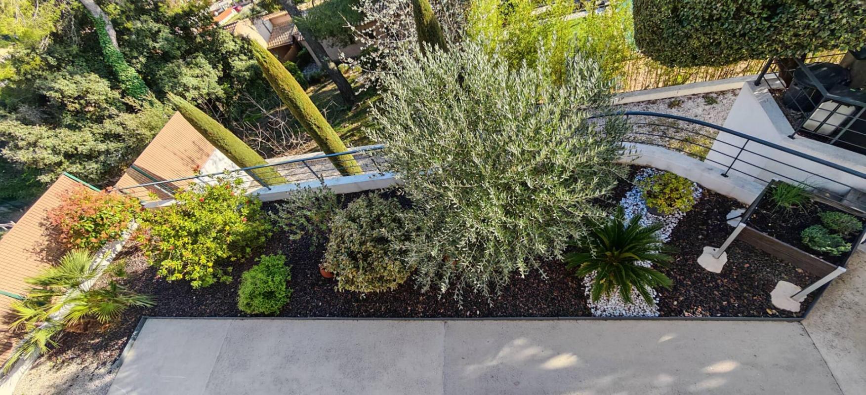 Le séjour et la cuisine ouvrent sur une terrasse carrelée de 19m² orientée sud et équipée d'une pergola bioclimatique équipée de stores et de moustiquaires