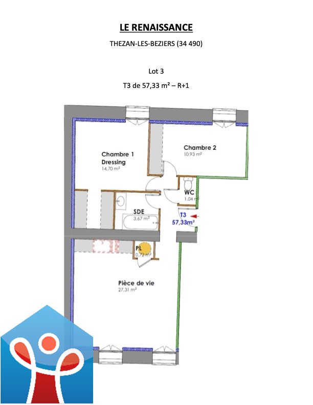 Achat Appartement 3 pièces 57m² THEZAN LES BEZIERS 34490