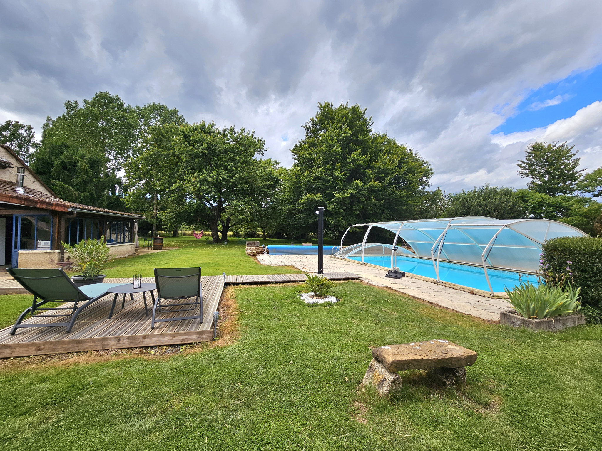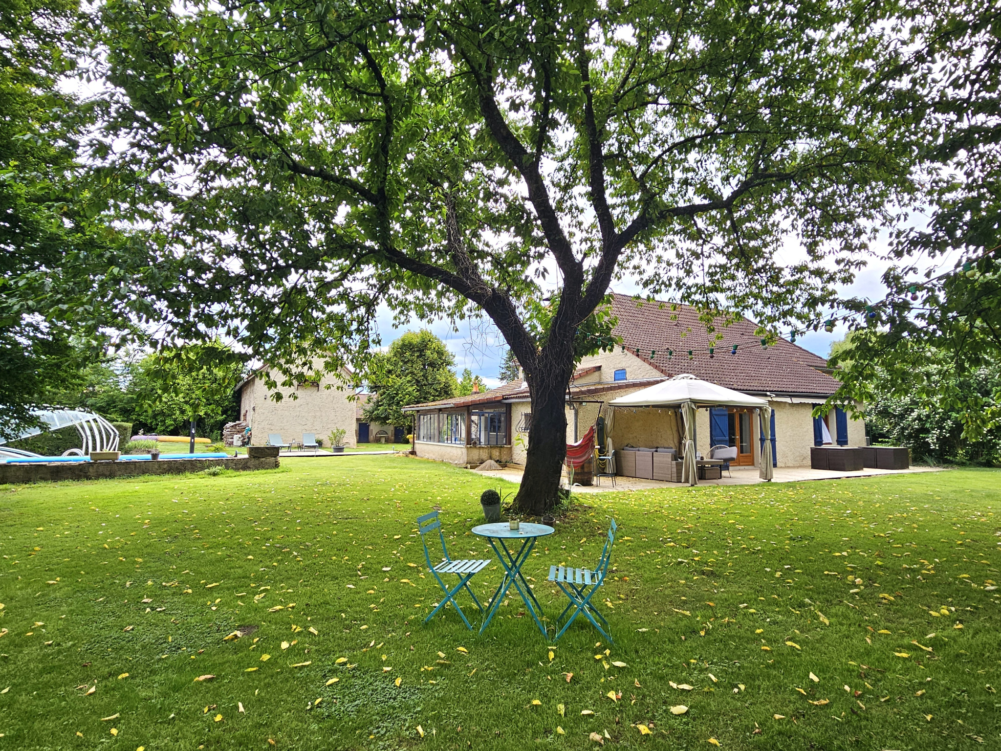Grange de 80 m2 au sol, petites dépendances, garage 3V avec portes automatisées, bûcher, cave... Les extérieurs vous invitent à la détente : piscine chauffée 9.5x4.5m avec abri amovible, terrasses, terrain de jeux... Un lieu idéal pour se ressourcer !