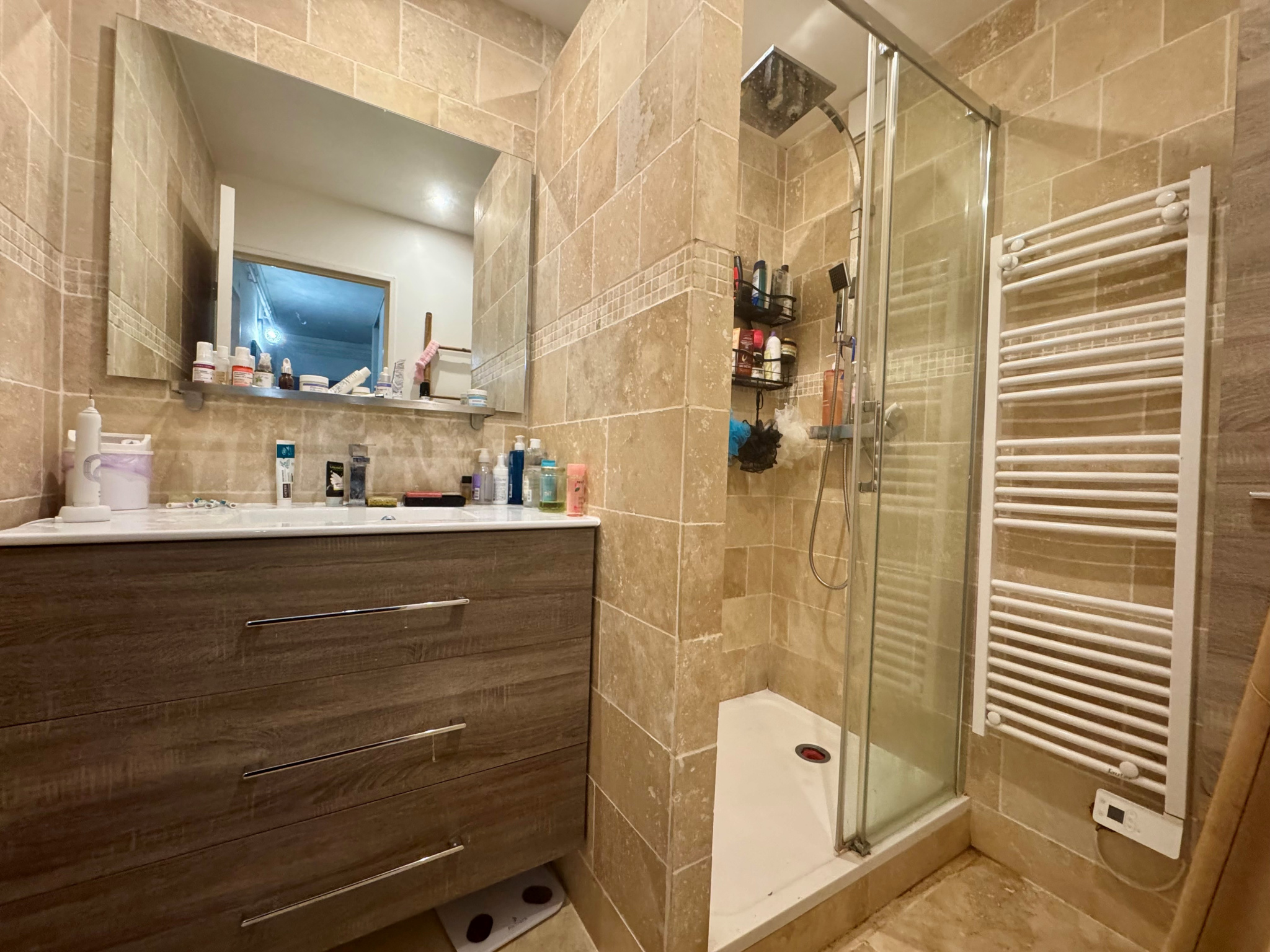 Une salle d'eau moderne et fonctionnelle, avec des finitions soignées et un design contemporain, pour vos moments de détente après une journée bien remplie.