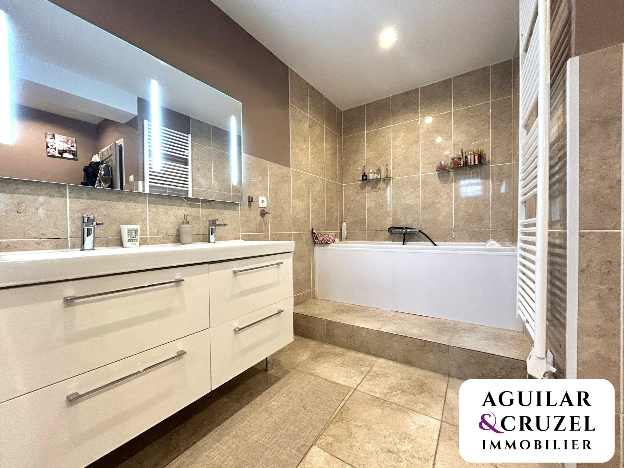Vous y trouverez également une grande salle de bain, équipée à la fois d'une douche et d'une baignoire, ainsi qu'une buanderie pratique au quotidien.