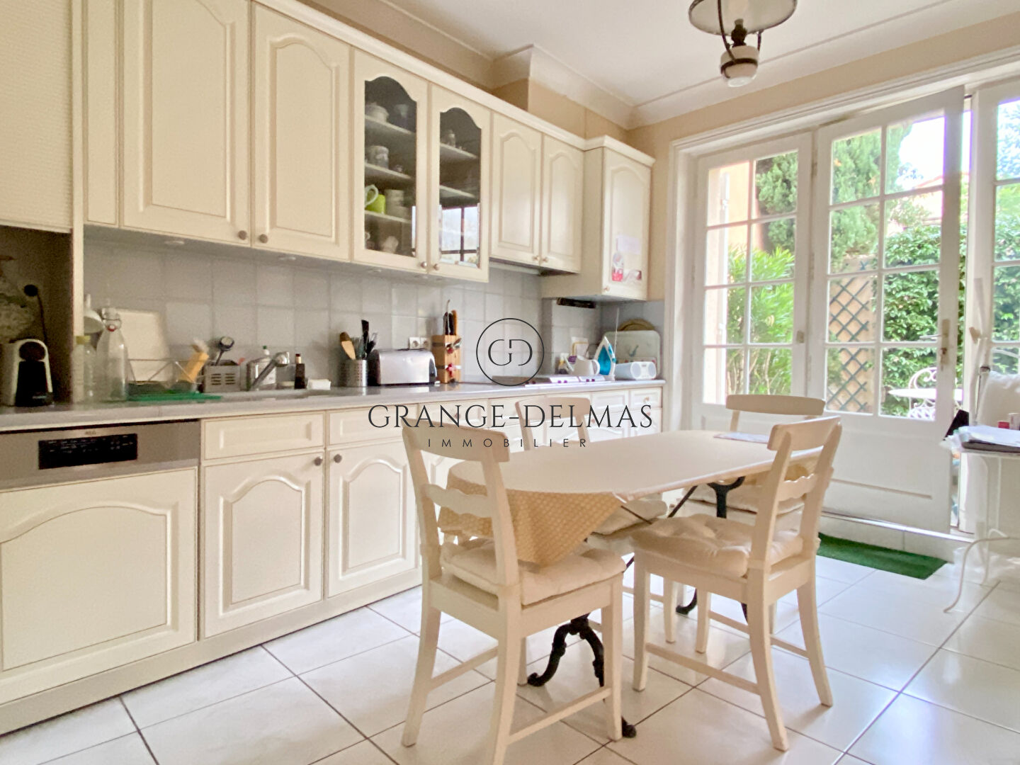 L'entrée centrale distribue une double réception aux belles prestations d'origine avec parquet, cheminée et belle hauteur sous plafond. La grande cuisine dinatoire donne sur le jardinet bien exposé. Une buanderie et un wc complètent ce niveau.