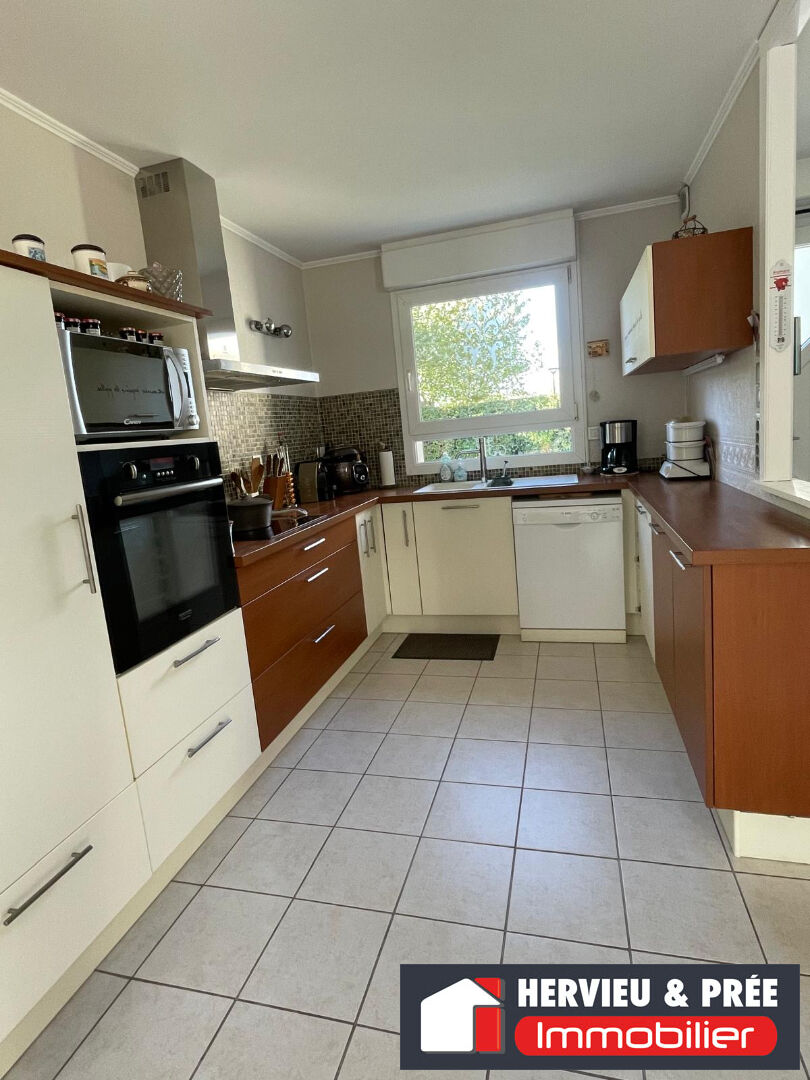 HEROUVILLE SAINT CLAIR, secteur LEBISEY: Belle maison édifiée sur une parcelle d'env 433 m2 comprenant: entrée, wc, placards, buanderie, pièce de vie ensoleillée avec cheminée insert, cuisine ouverte aménagée, garage. et places de parking. Etage: 3 belles chambres avec placards et dressings, salle de bain (douche et baignoire), wc. prestations soignées. Jardin clos avec abri.