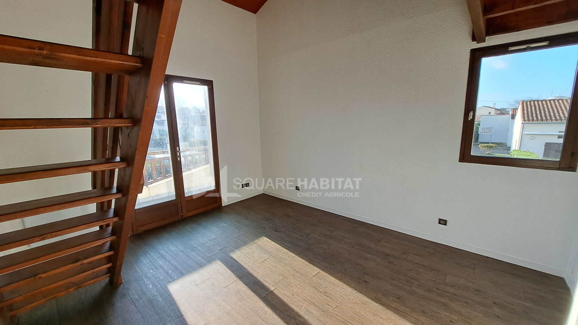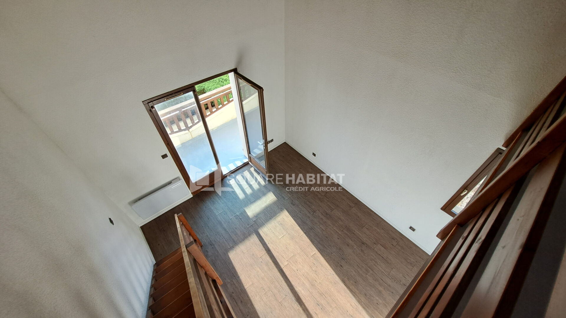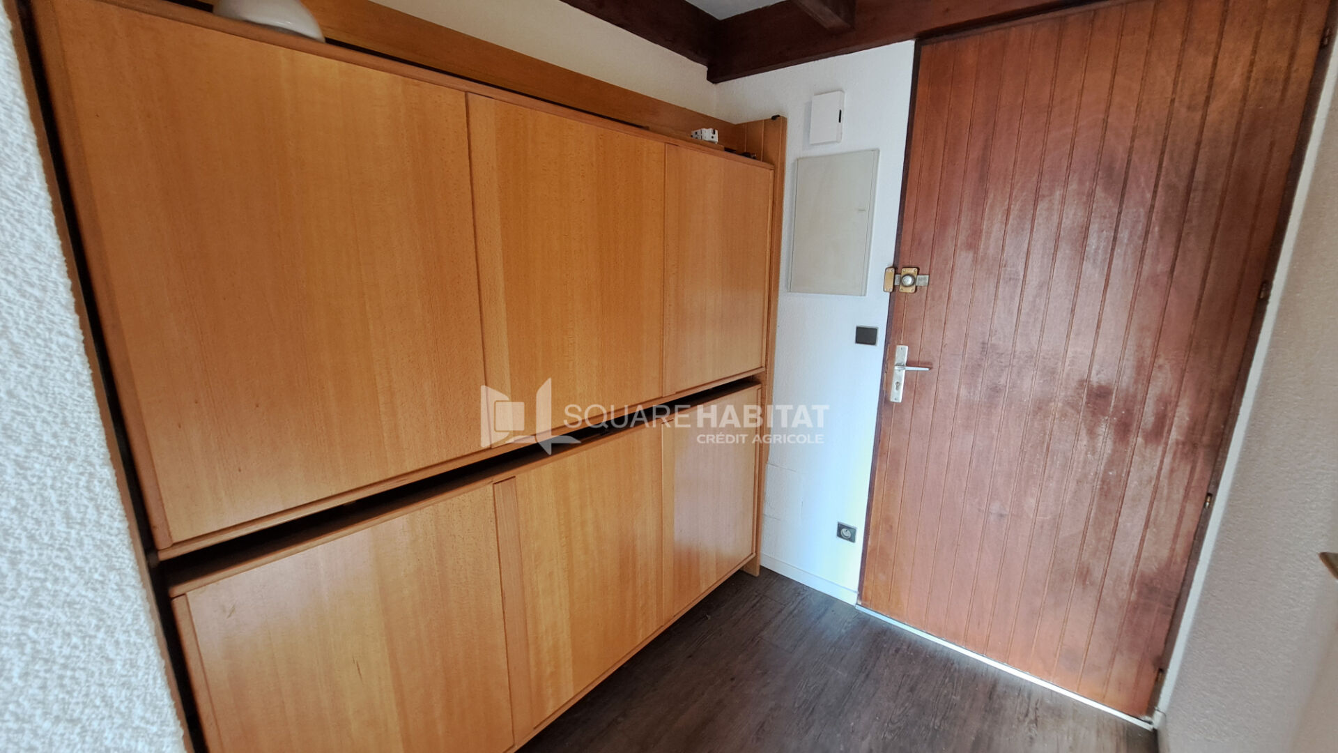 il comprend une entrée cabine avec deux lits superposés, escamotables, très pratique, une pièce de vie avec une belle hauteur sous plafond et une cuisine ouverte pour env.16 m2 ouvrant sur une terrasse avec une vue dégagée (store banne), et une exposition idéale sud-ouest, une salle de bains et un WC indépendant.