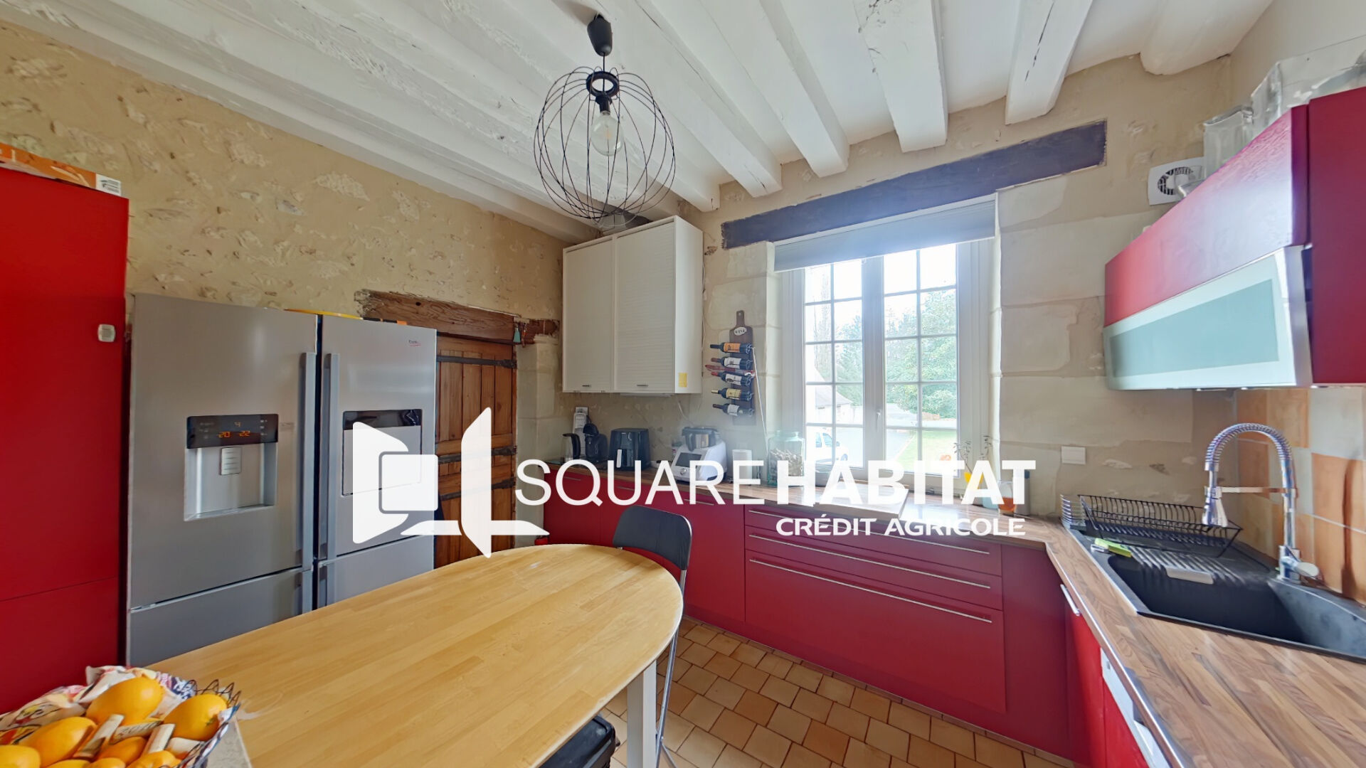 Dès l'entrée, vous serez séduit par le charme authentique de cette demeure. Le rez-de-chaussée se compose d'une cuisine entièrement équipée avec son arrière-cuisine, d'une salle à manger conviviale agrémentée d'une cheminée et d'un vaste salon baigné de lumière.