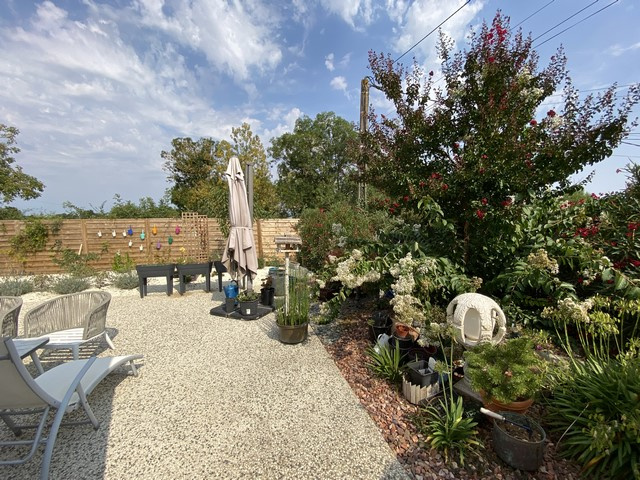 Sur un terrain clos et paysagé de 616 m2 avec 2 grandes terrasses, un patio et un porche.
