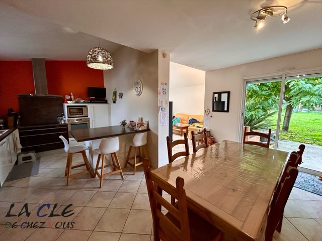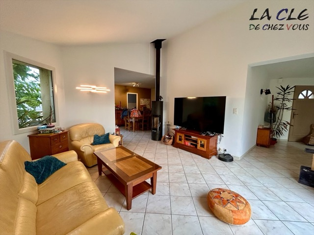 La maison bénéficie d'un chauffage au sol par pompe à chaleur et un poêle à bois scandinave, offrant confort et économie d'énergie.
