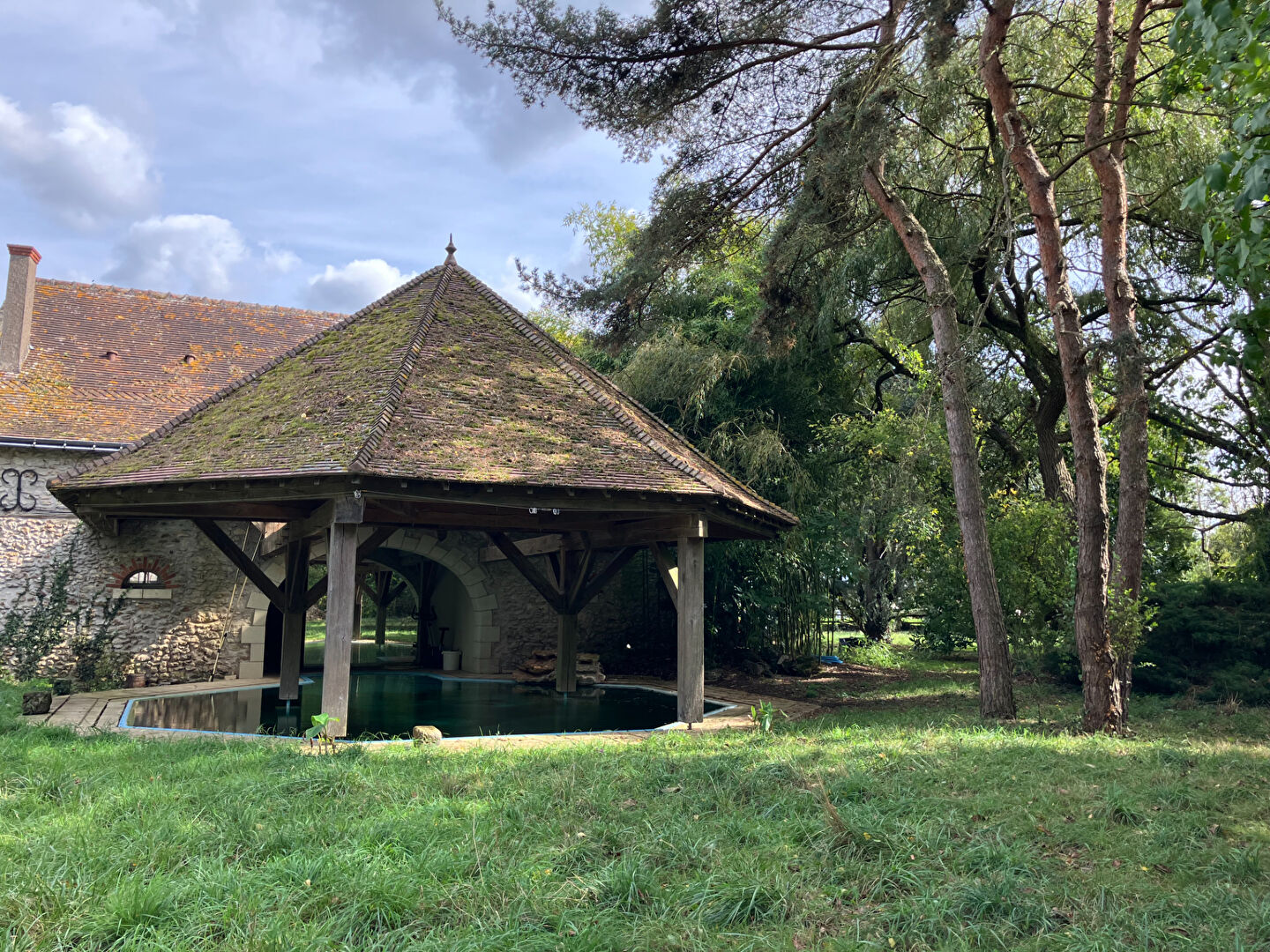 Ouvert sur une piscine d'architecture octogonale original couverte