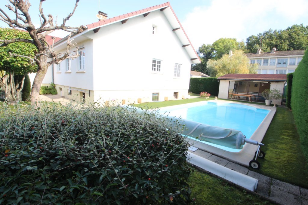 Très agréable et spacieuse maison contemporaine de 1972, entretenue et dotée d'équipements (volets électriques, portail et porte de garage électrique, cuisine équipée, chaudière Viessmann, piscine,...),