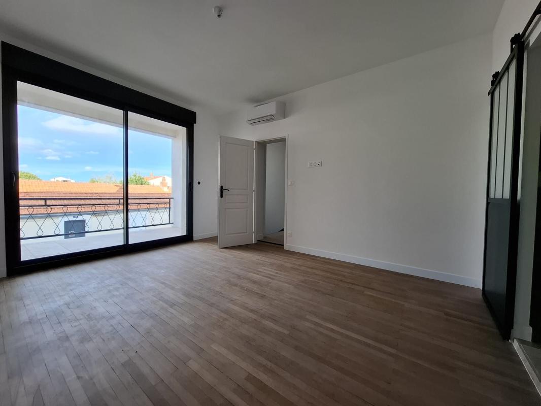 À l'étage, le palier mène à deux chambres, chacune bénéficiant de sa salle d'eau privative. La chambre principale s'ouvre sur une terrasse privative, idéale pour profiter des beaux jours. Une troisième salle de bains, équipée à la fois d'une baignoire et d'une douche, complète ce niveau. Le second étage accueille quant à lui deux chambres supplémentaires, spacieuses et confortables.