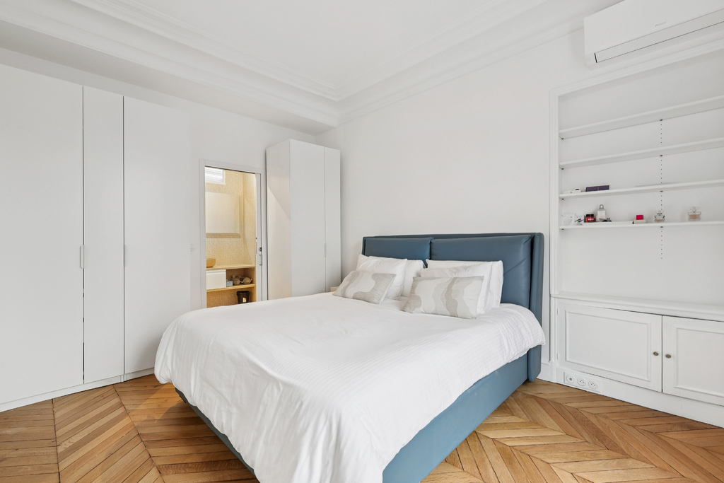 Situé dans le Triangle d'or, dans le 8e arrondissement de Paris, cet appartement jouit d'une excellente situation. À deux pas des Champs-Élysées et de la place de l'Étoile, son environnement est à la fois calme et vivant, avec ses magasins de luxe, ses restaurants connus et ses lieux culturels. La proximité de la Seine et la vue sur la Tour Eiffel ajoutent au charme de ce lieu, où le chic parisien s'allie bien avec la vie de la ville.