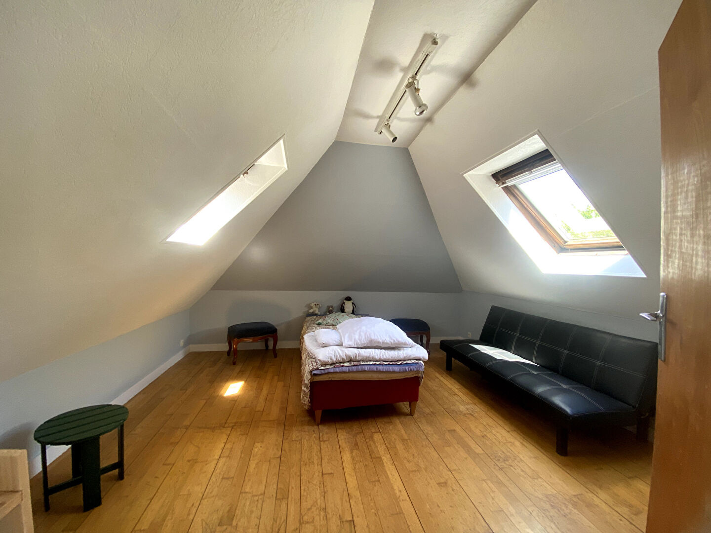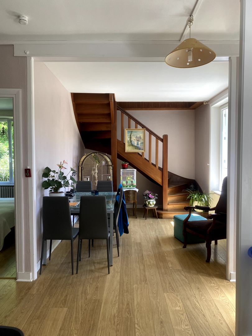 À l'étage, un palier distribue deux chambres supplémentaires et une salle de bain, offrant un bel espace nuit pour accueillir famille et amis.