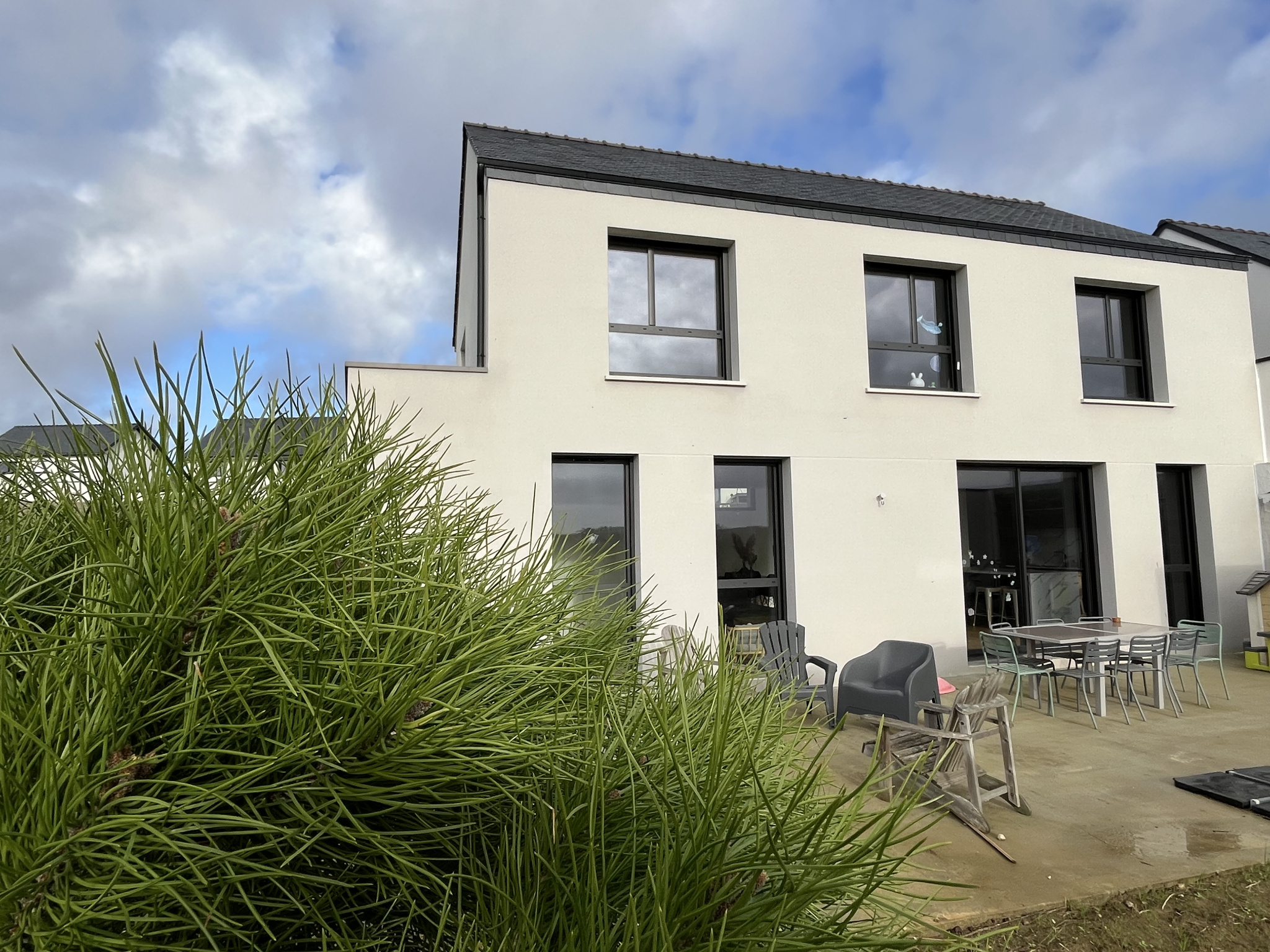 Vos agences Loge 7 Immobilier vous présentent, en direction des plages et au coeur d'un quartier résidentiel très prisé de GUIDEL, une belle contemporaine d'exception composée de 4 chambres dont une suite parentale en rez-de-chaussée.