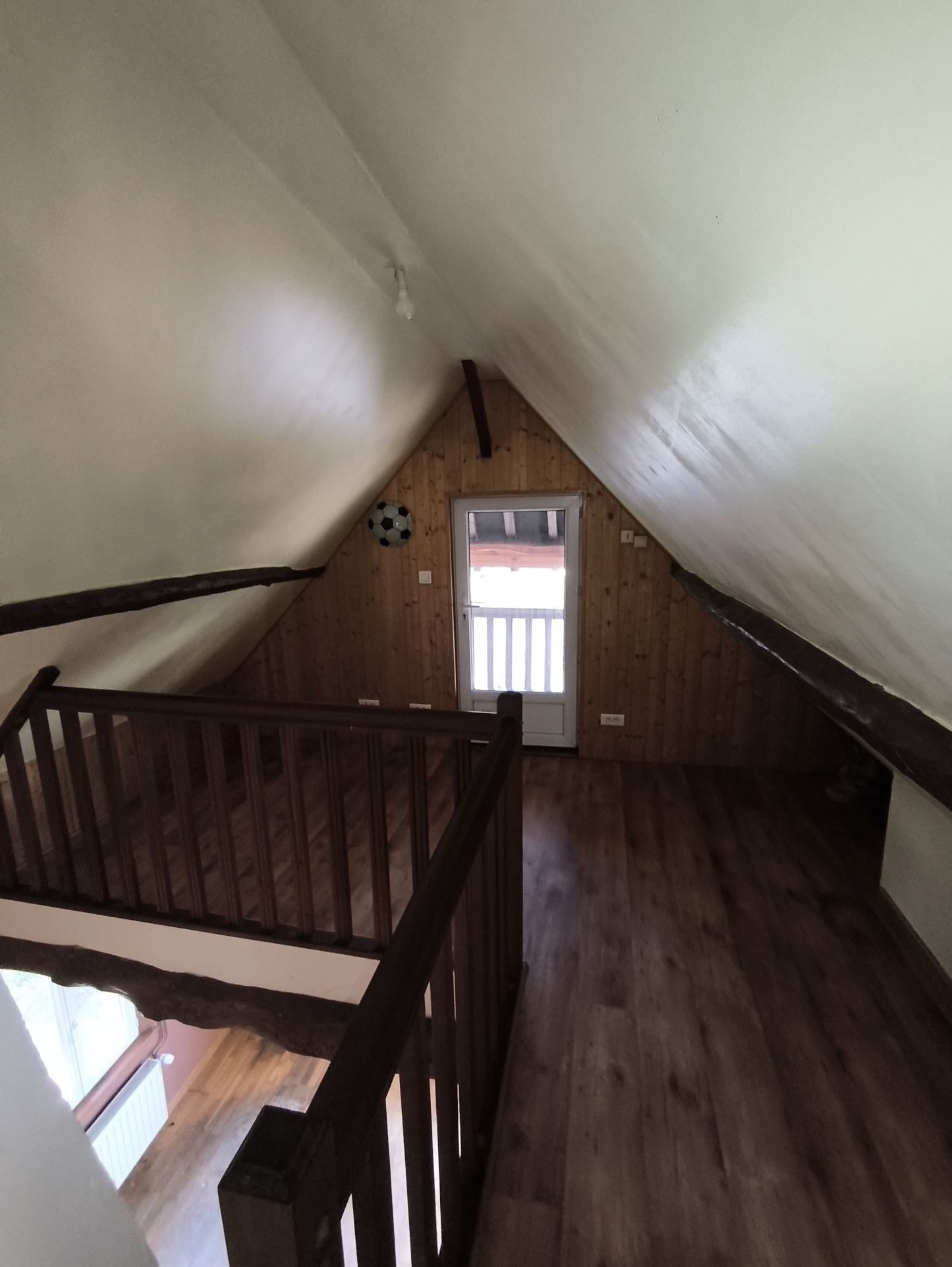 A l'étage, une grande pièce palière donne accès à une chambre, un dressing et une salle de bain avec WC, mezzanine au dessus du salon.