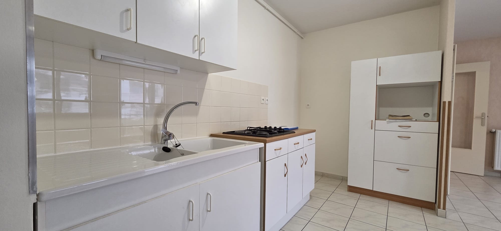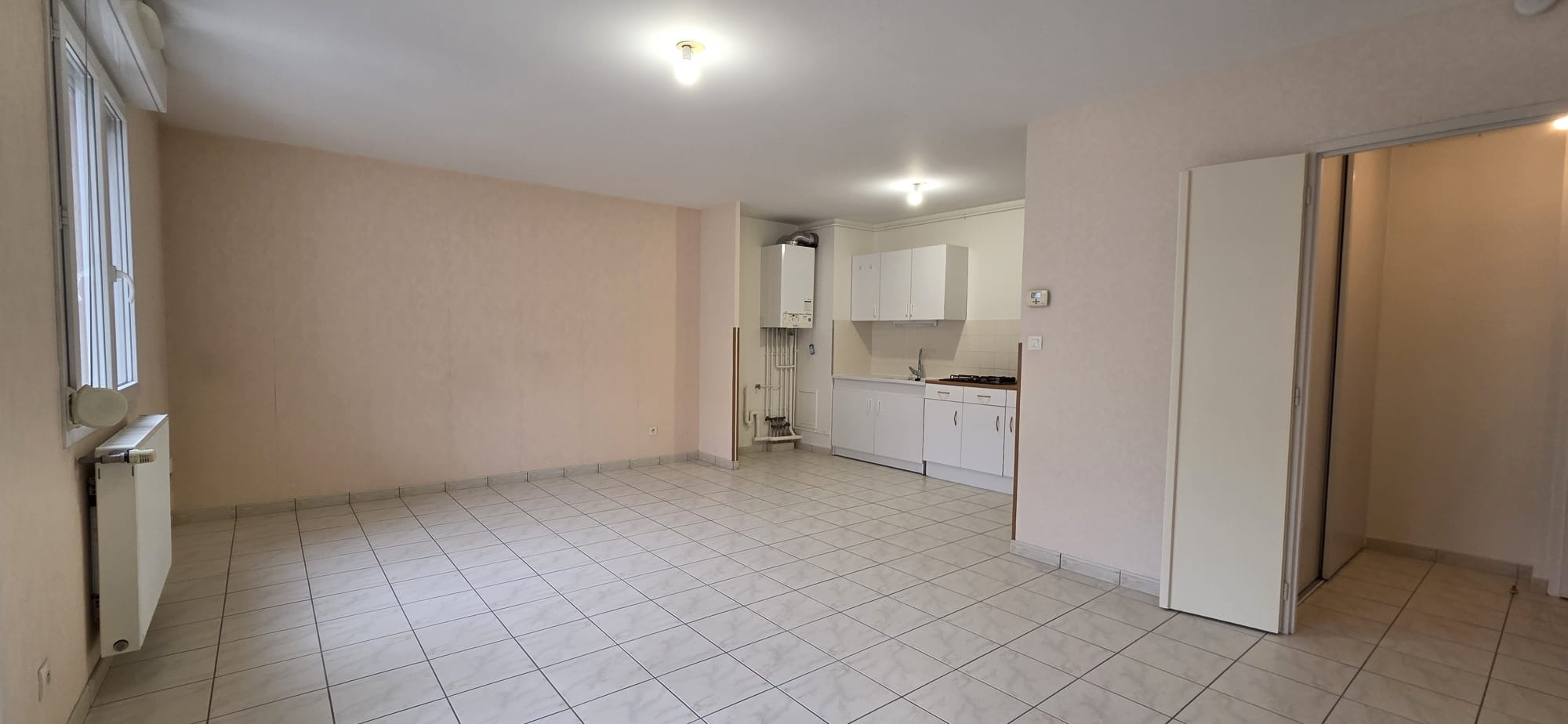 Situé au 3ème étage avec ascenseur d'une copropriété de 2002 bien tenue, l'appartement se compose d'une entrée avec rangement, d'un séjour de 24 m2 avec cuisine ouverte de 7m2. Cette grande pièce de vie donne sur un balcon de 5m2.