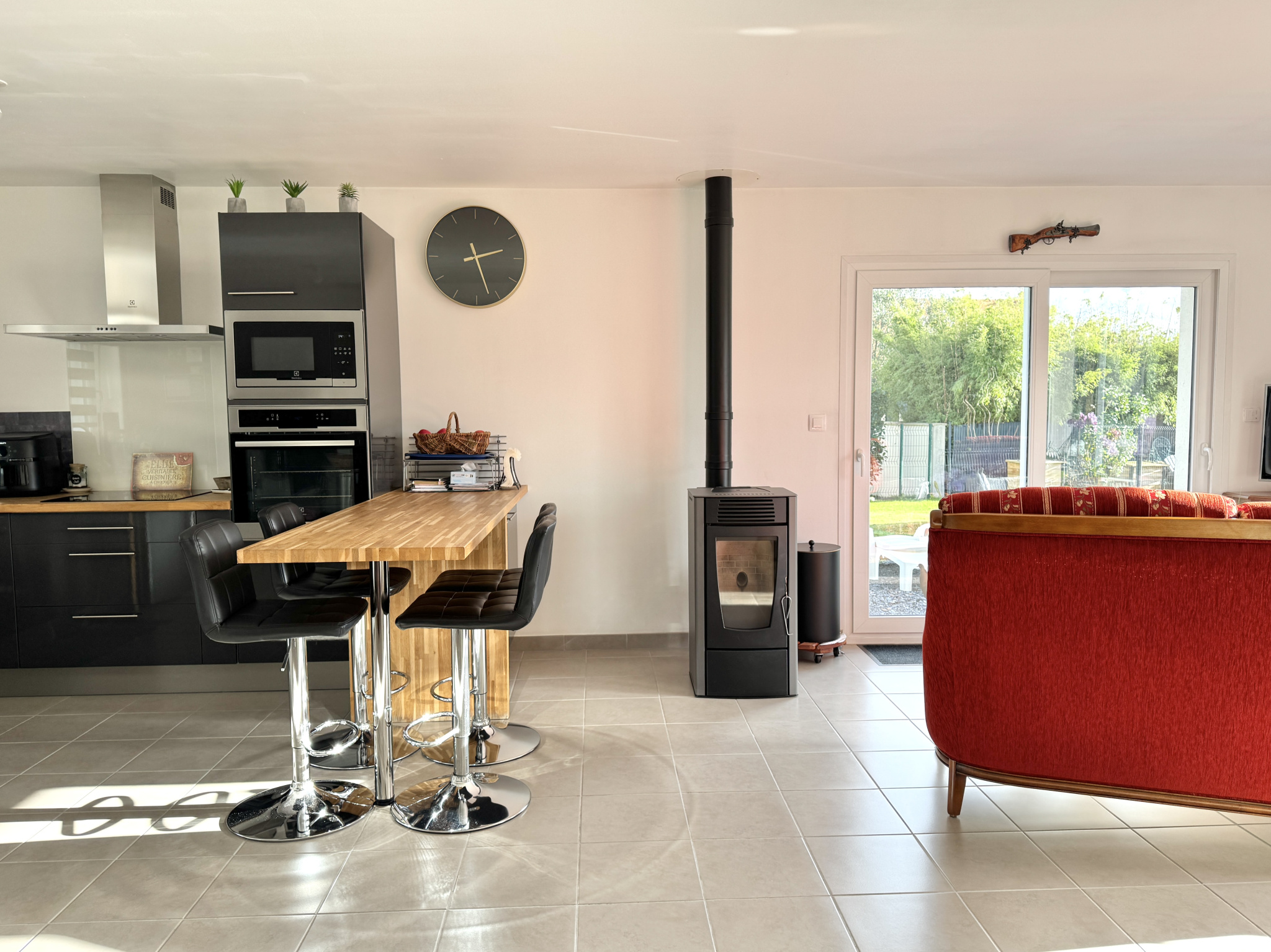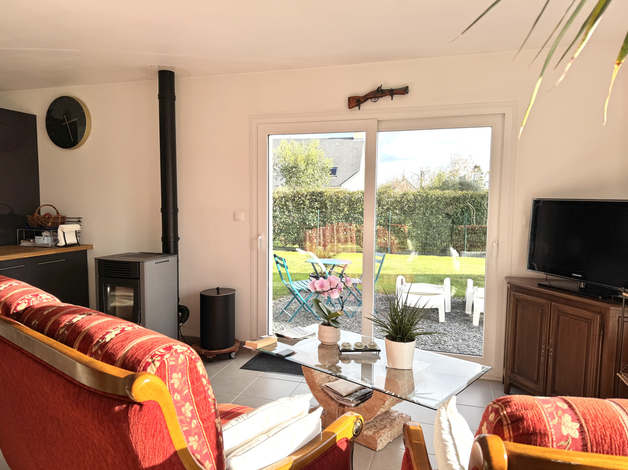 Dès l'entrée, vous serez séduit par la pièce de vie conviviale où la cuisine aménagée et équipée s'ouvre sur le séjour. Le poêle à granulés, installé au coeur de l'espace, apporte une ambiance chaleureuse et permet de profiter d'un chauffage économique et agréable. La partie nuit se compose d'un couloir desservant trois chambres, dont deux équipées de placards encastrés, ainsi que d'une salle d'eau.