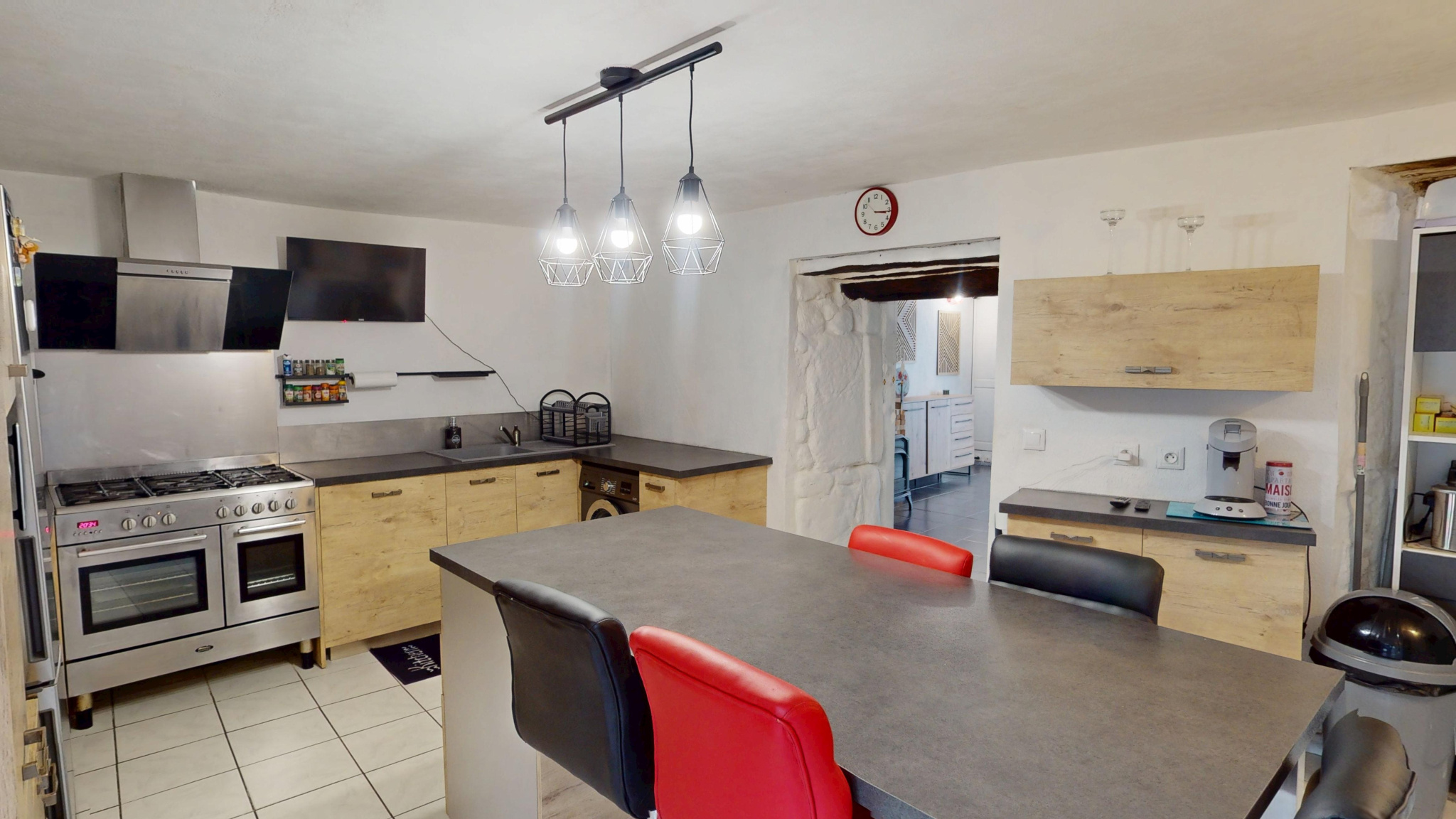 - En rez-de-chaussée, vous découvrirez de belles pièces de vie avec un grand séjour chaleureux sublimé par un mur en pierre apportant beaucoup de charme au bâti, ainsi qu'une cuisine semi-séparée par ce mur, organisée autour d'un grand îlot central prolongé par une grande table, idéale pour les moments conviviaux. À ce niveau, l'accès sur un jardin d'environ 160 m2, bénéficiant d'une très jolie vue et d'une parfaite intimité.