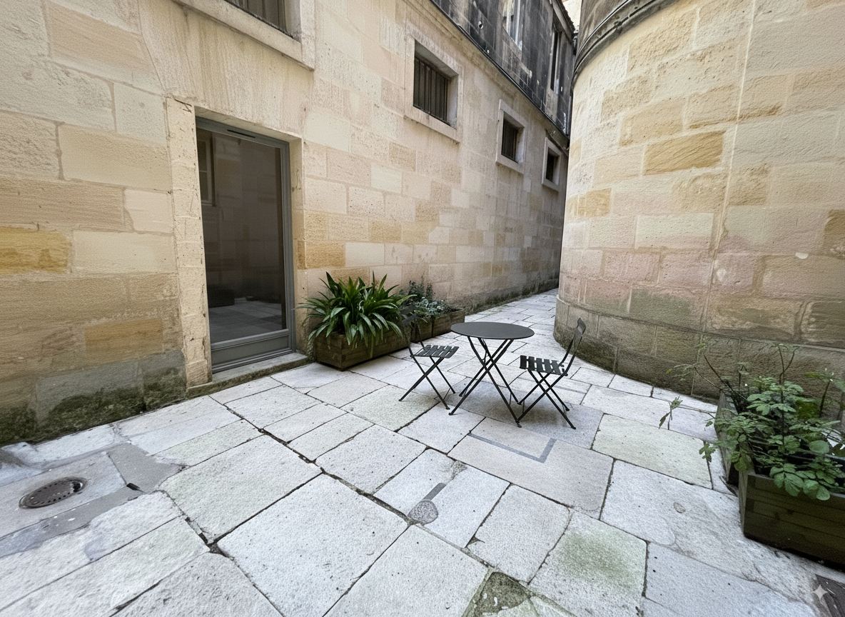 Jouissance privative de la cour intérieur de l'immeuble pour profiter d'un déjeuner au soleil.