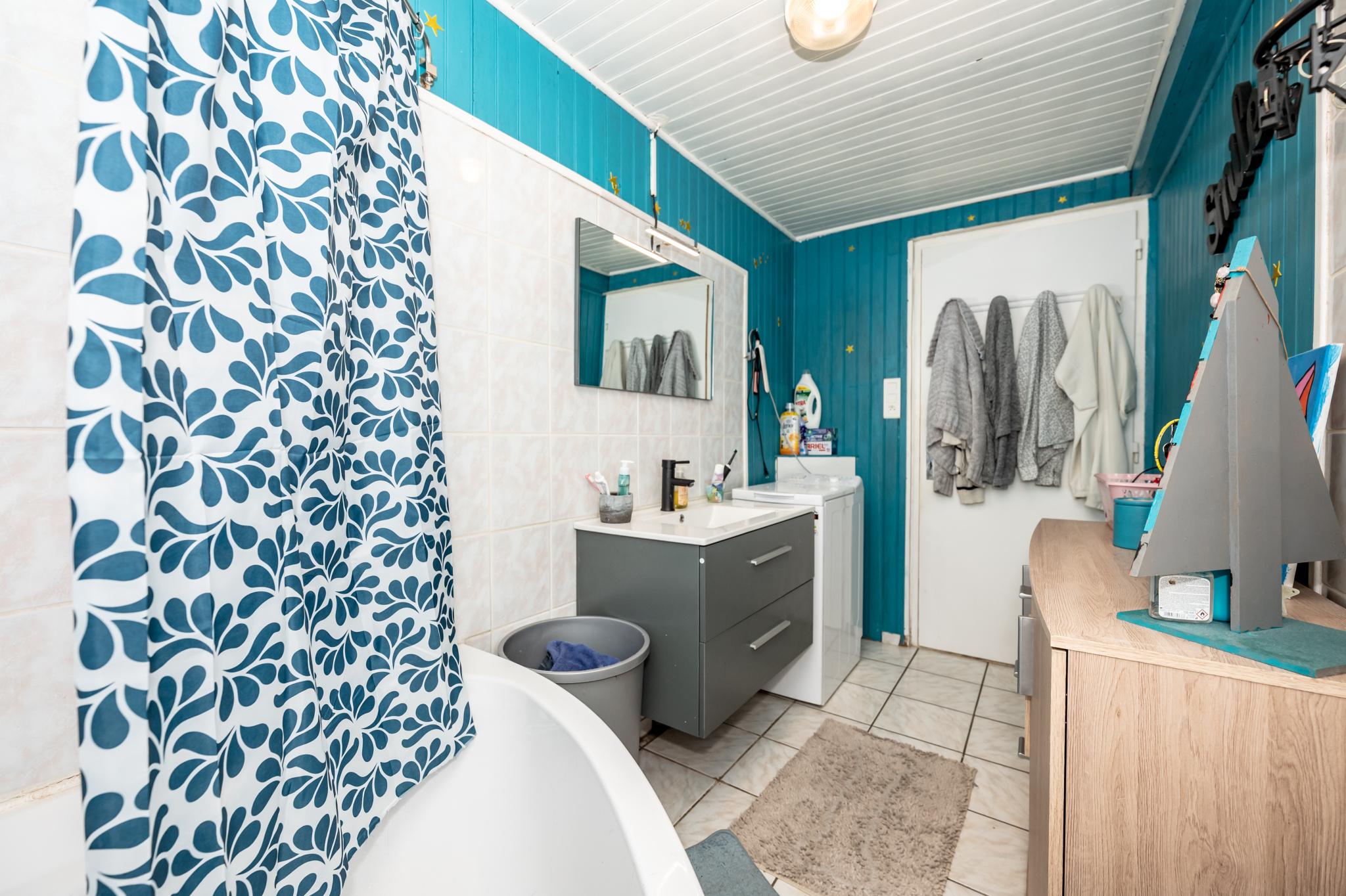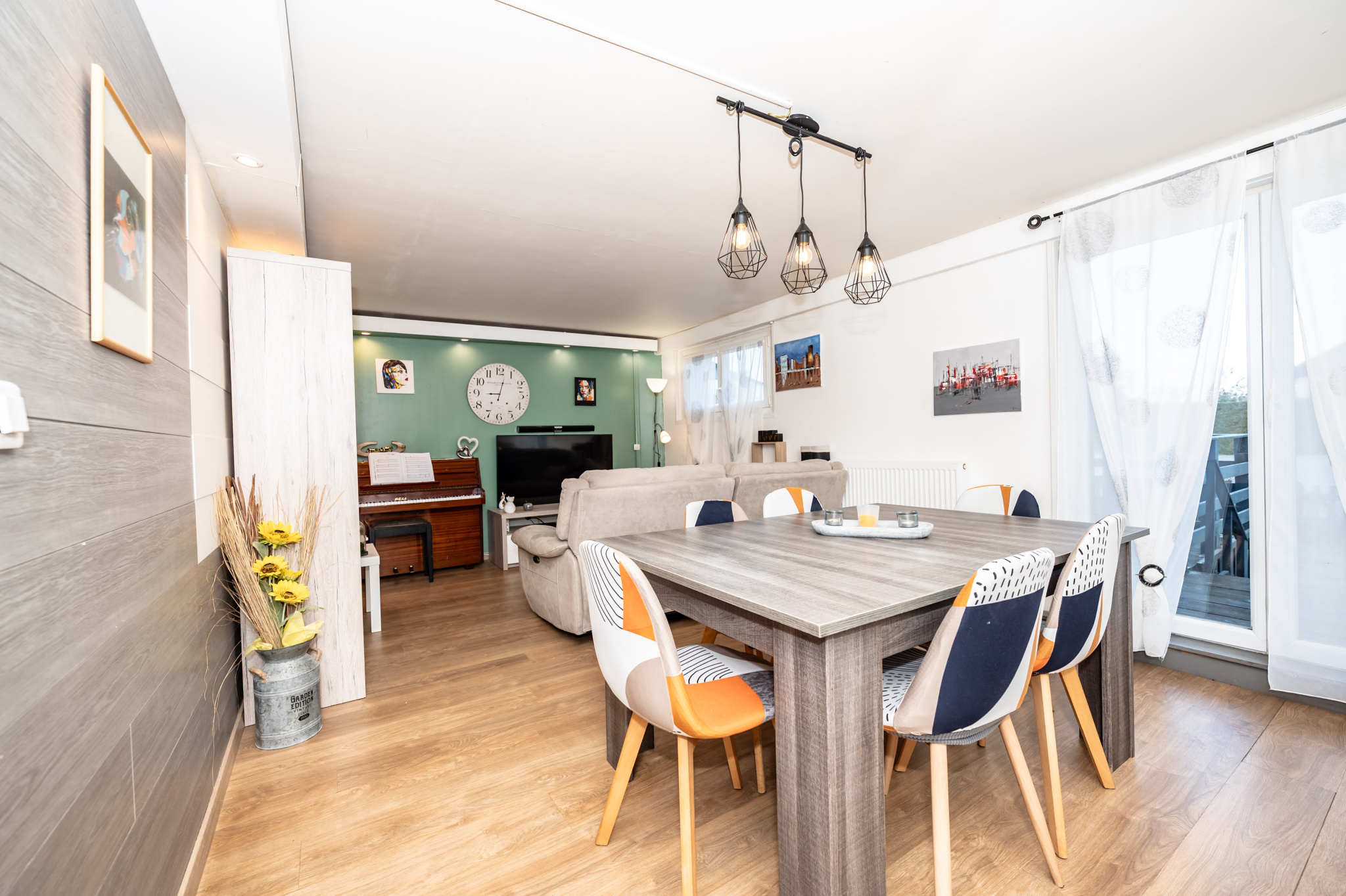 Appartement de type 4 comprenant : entrée, cuisine, salon-séjour ouvert sur terrasse et jardin, 2 chambres, salle de bain et WC.