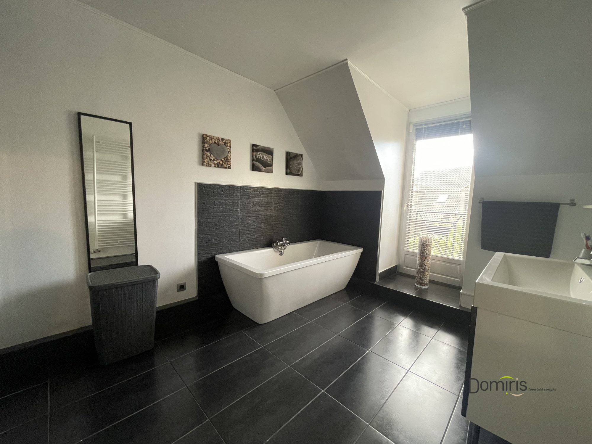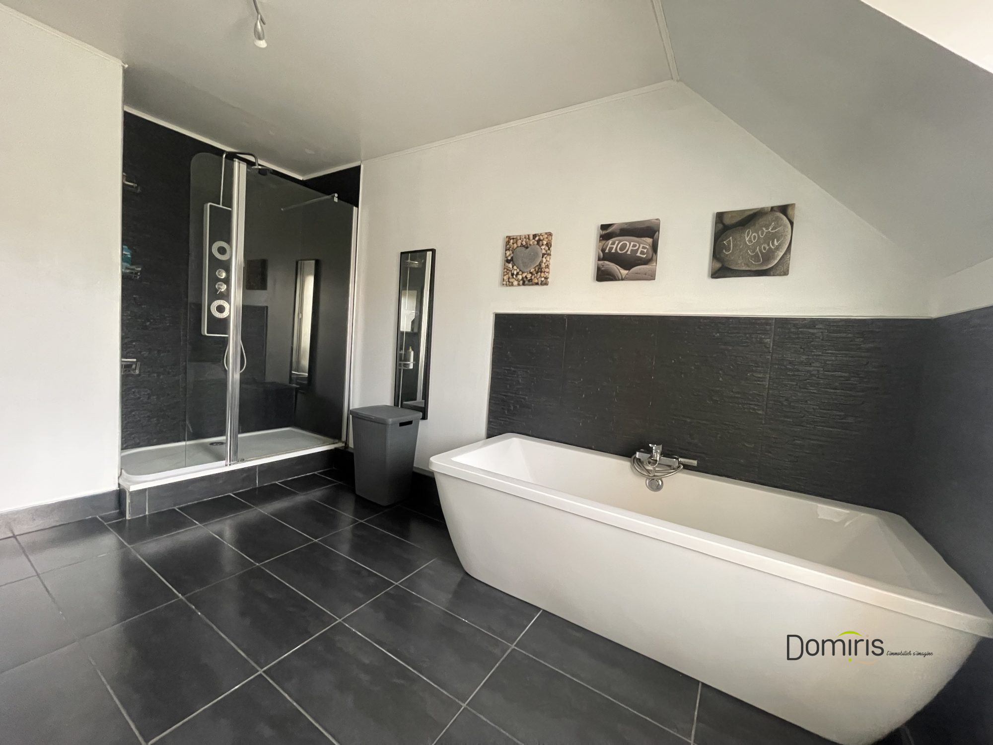 À l'étage, la maison propose trois chambres, dont une suite parentale avec salle d'eau, un dressing indépendant de 5,5 m² (ou bureau), ainsi qu'une grande salle de bains avec baignoire, douche et doubles vasques.