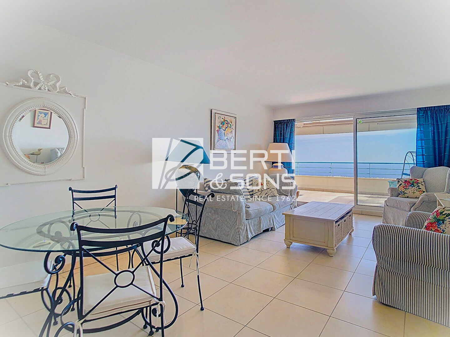 L'appartement se compose d'une entrée desservant un vaste séjour lumineux exposé sud-est et ouvert sur une belle terrasse ensoleillée, d'une cuisine indépendante entièrement aménagée, ainsi que de deux chambres dont une suite parentale face à la mer avec salle de bains. Une salle de douche avec WC ainsi qu'un toilette invités viennent compléter l'ensemble.