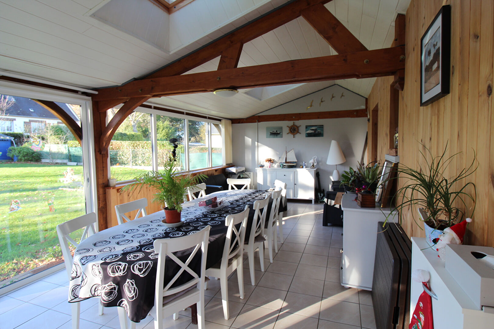 rez de chaussée : salon/salle à manger avec poêle , dans le prolongement une véranda de 34 m², cuisine indépendante aménagée et équipée, chambre, salle d'eau et wc séparé ;