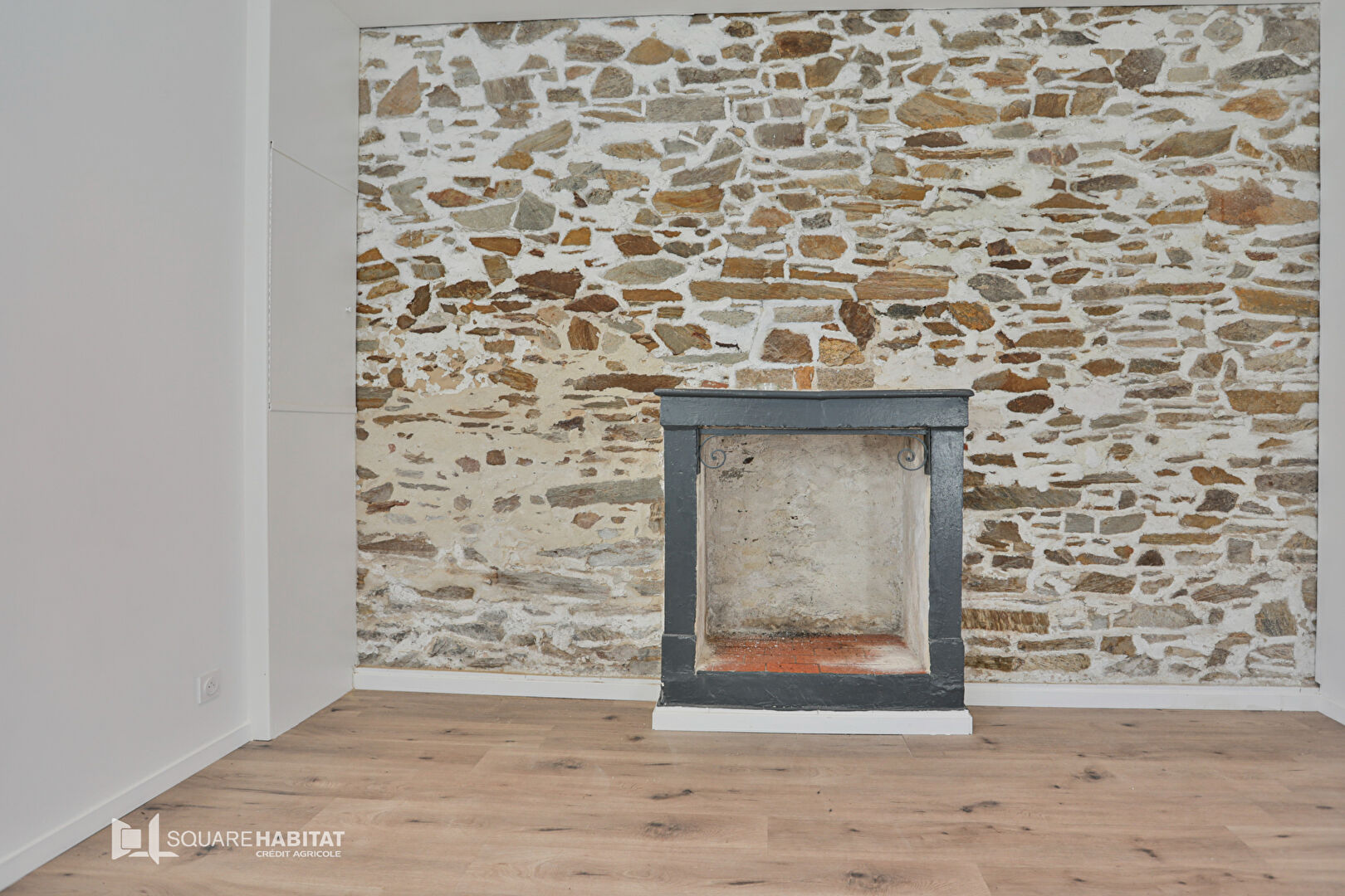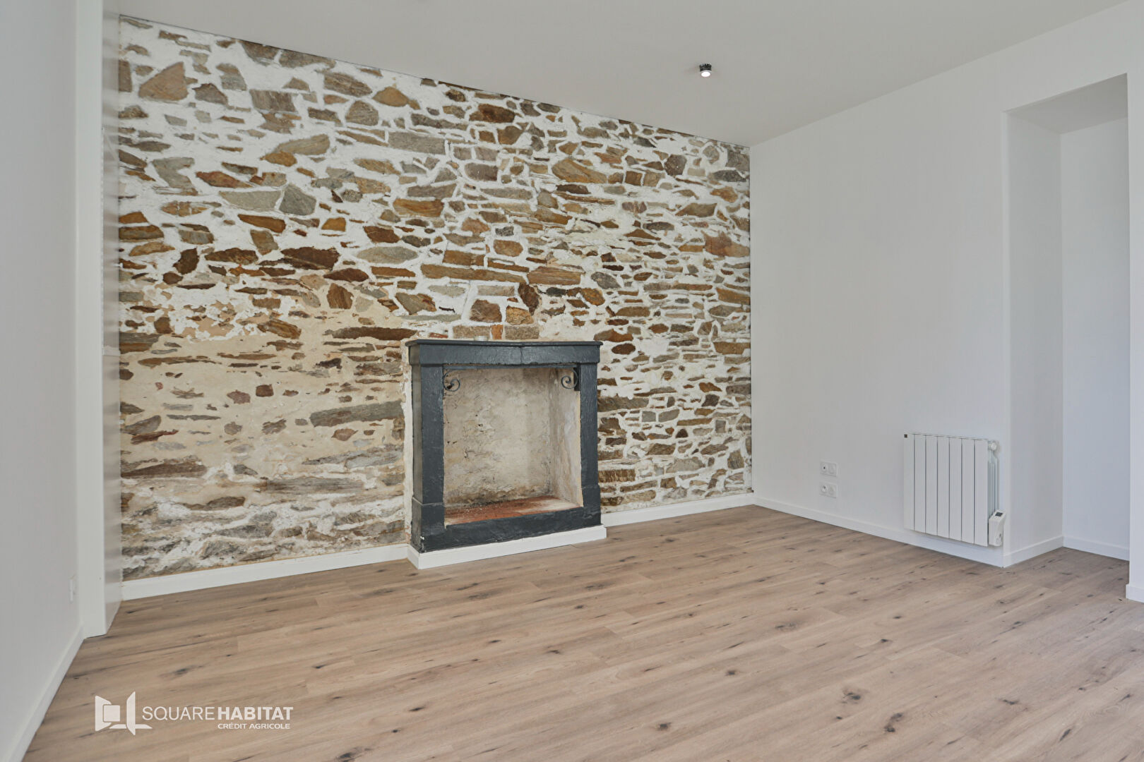 Elle offre une pièce de vie lumineuse, sublimée par un mur en pierre apparente, une cuisine aménagée et entièrement équipée semi-ouverte, deux chambres et une spacieuse salle d'eau.