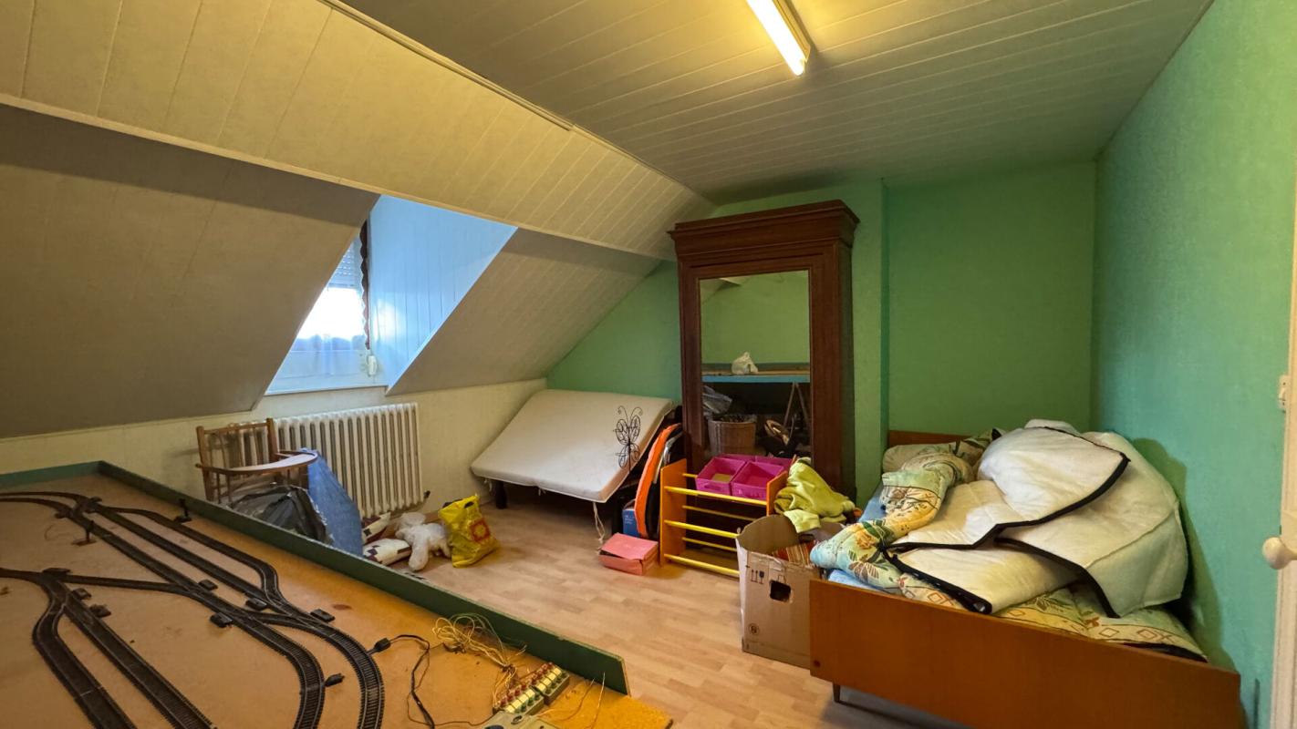 A l'etage, un palier mène à deux vastes chambres ainsi qu'à une salle d'eau avec WC.