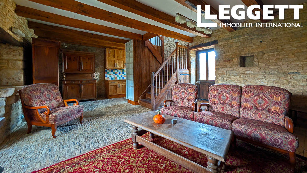 A41287SUG24 - Une ferme en pierre du XVIIIe siècle attenante à une grange partiellement rénovée, formant deux logements dans une ancienne cour fortifiée entourée d'un jardin, d'une prairie et d'une grande grange séparée. La maisonnette comprend un coin cuisine et un salon avec un sol en partie dallé et en partie en pisé, des murs en pierres apparentes et une grande cheminée en pierre d'origine avec un poêle à bois, 1 à 2 chambres et une salle d'eau. La grange partiellement restaurée dispose d'un rez-de-chaussée spacieux à finir, de 3 à 4 chambres et de deux salles d'eau. Les deux propriétés pourraient être reliées par une porte, laissant ainsi la possibilité de réaliser des projets de finition intérieure passionnants, adaptés aux goûts de chacun.