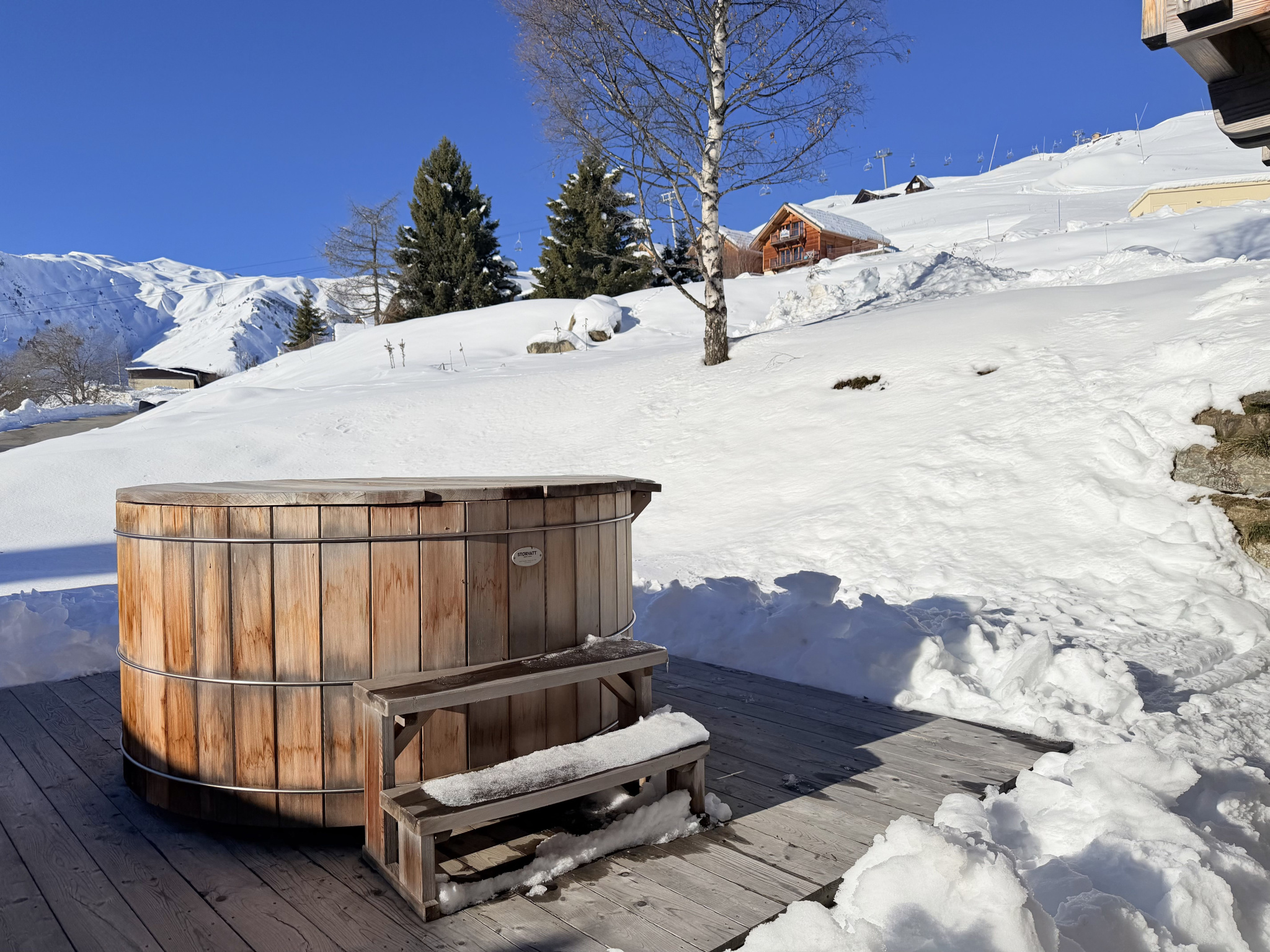 Les espaces dédiés au bien-être et aux loisirs renforcent le caractère unique de ce bien. Une salle de sport entièrement équipée permet de prolonger l'expérience sportive en toute saison. Une salle de cinéma privée offre un espace de détente privilégié, idéal pour des moments de convivialité ou de repos après une journée en montagne. À l'extérieur, un bain norvégien offre un véritable espace de détente à ciel ouvert, invitant à profiter pleinement du cadre été comme hiver.