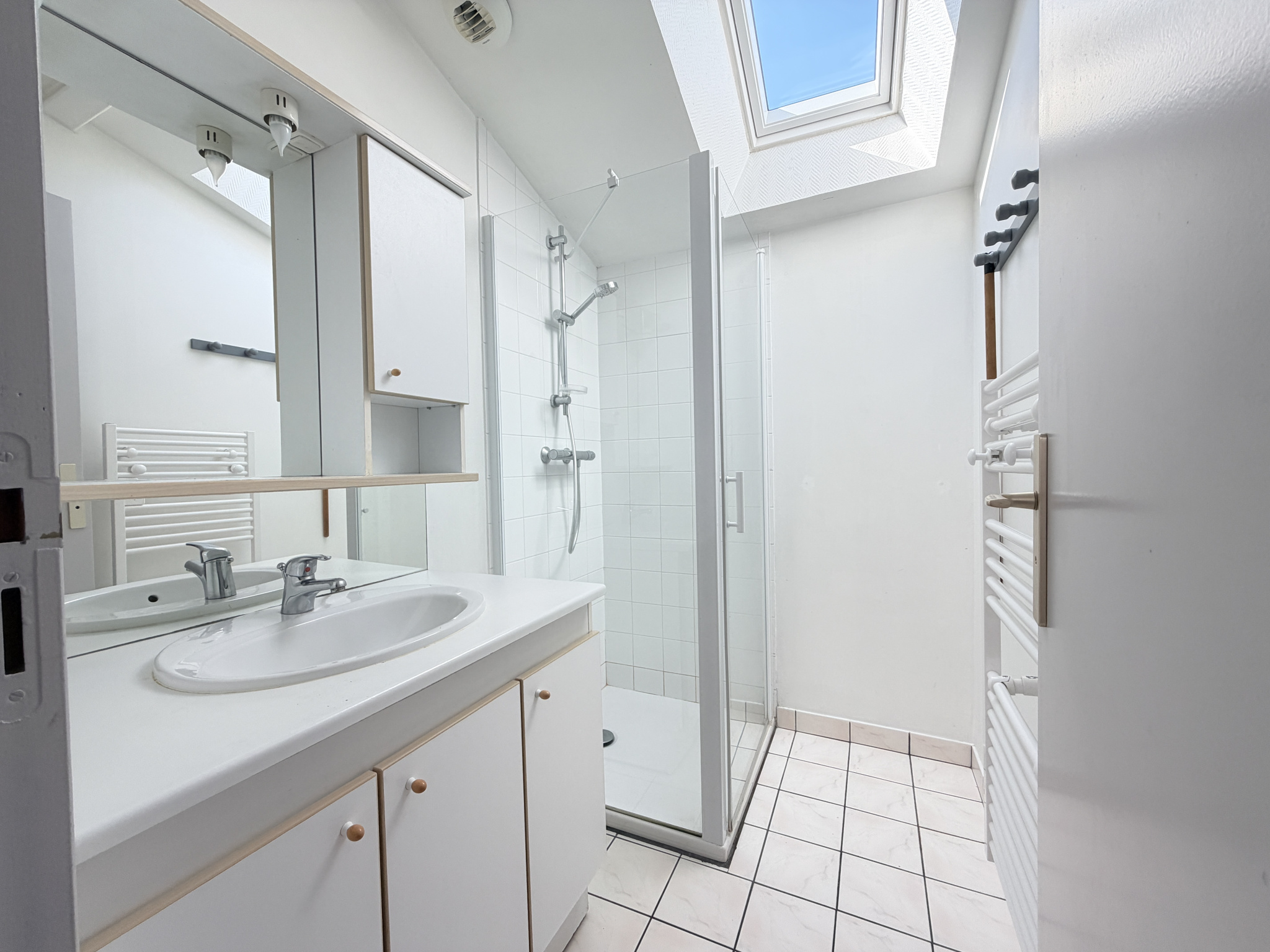 À l'étage, un palier dessert deux grandes chambres (13 m2 et 14 m2) ainsi qu'une salle d'eau bien agencée.