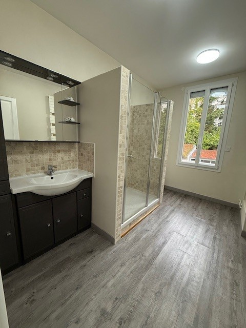En demi-palier grande salle d'eau avec wc.