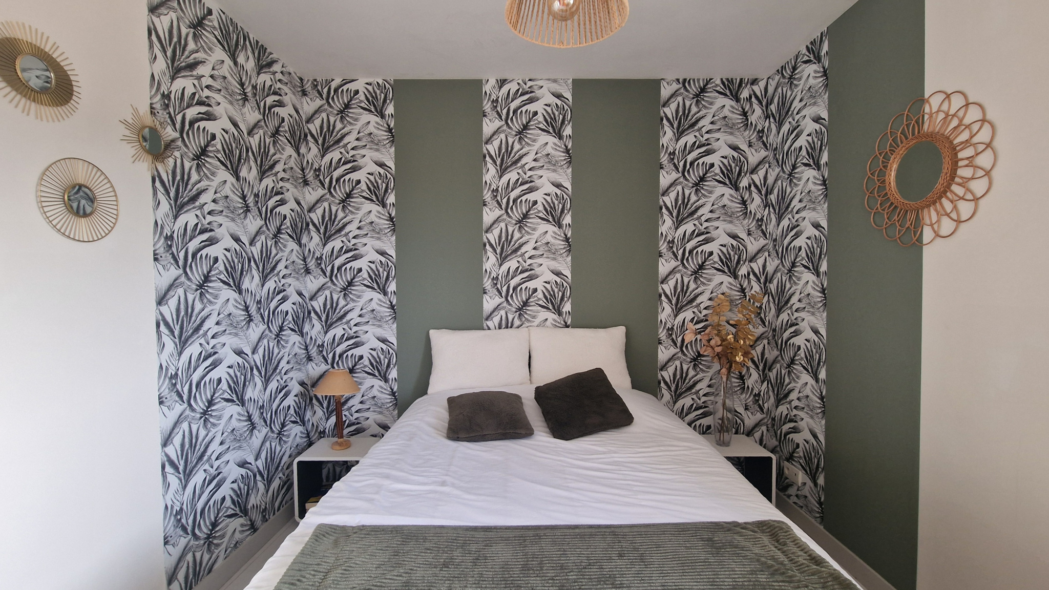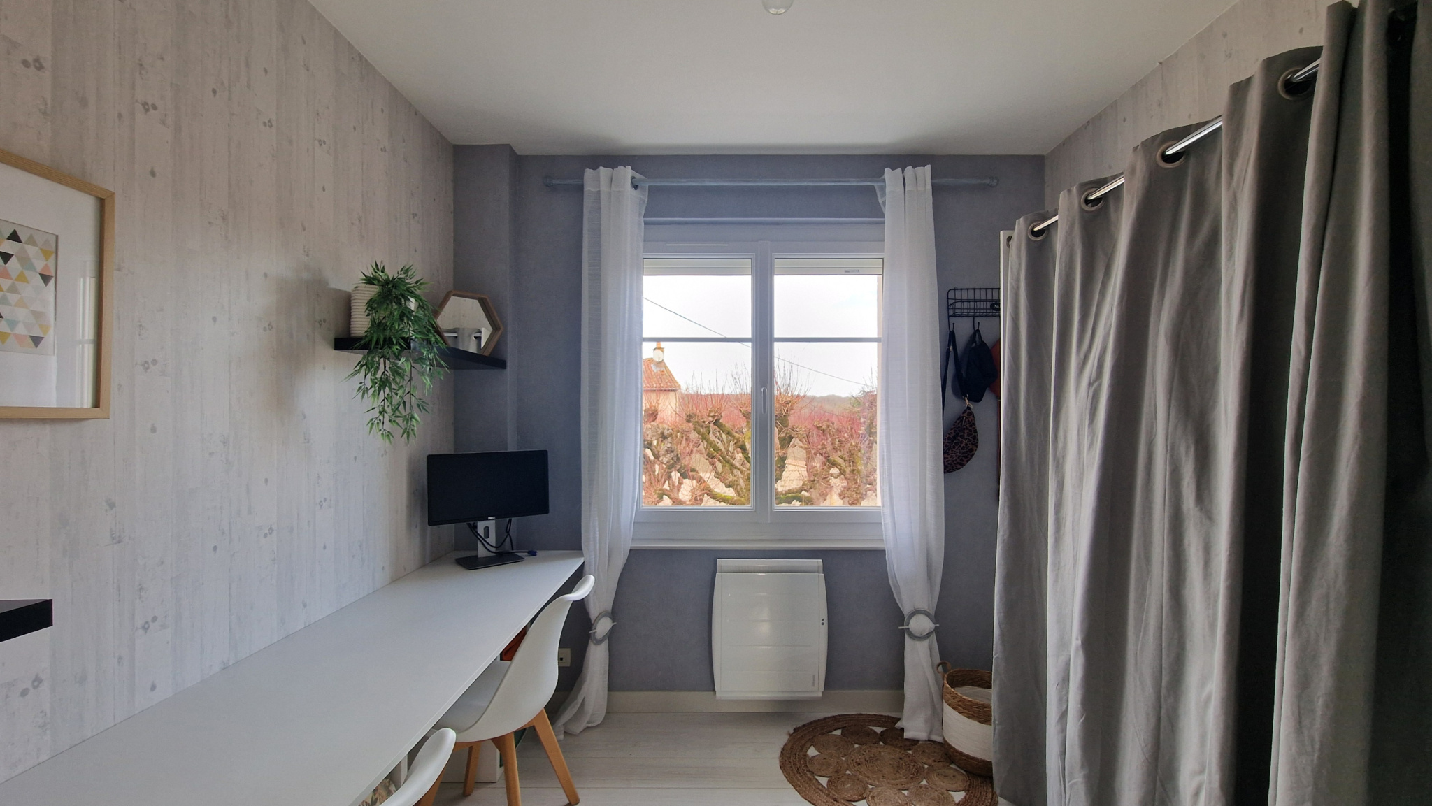 L'étage accueille l'espace nuit composé de deux chambres confortables, d'un bureau idéal pour le télétravail ou pouvant faire office de chambre supplémentaire, et d'une salle d'eau avec WC.