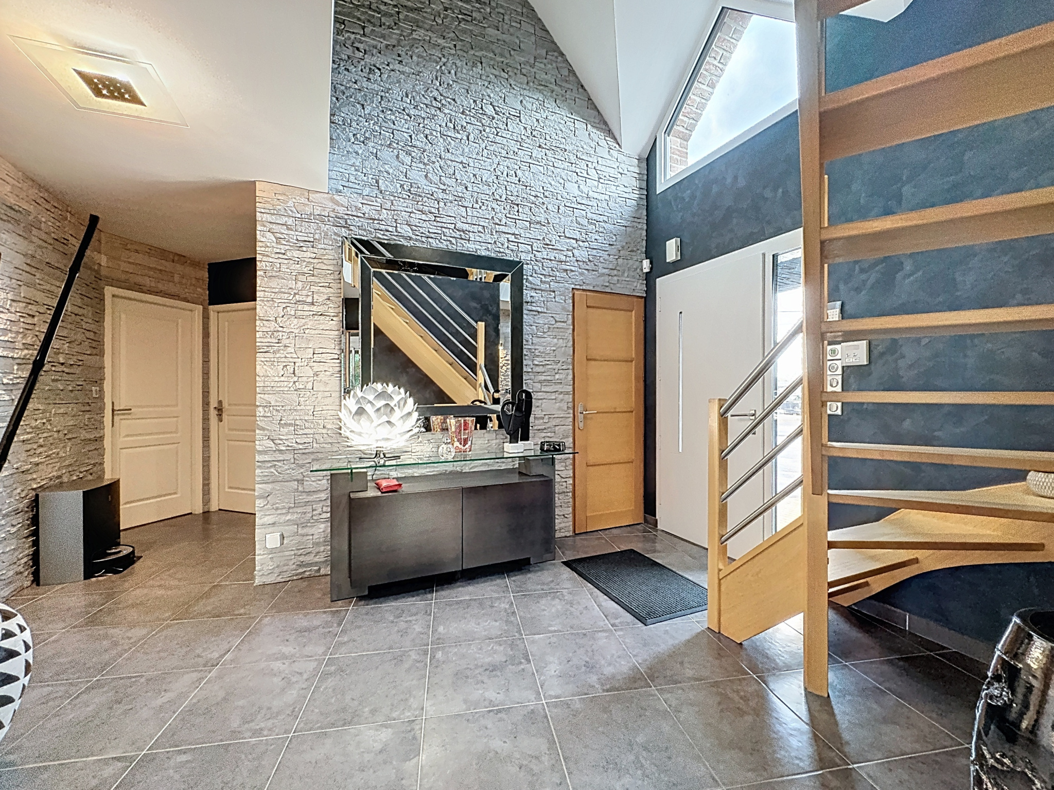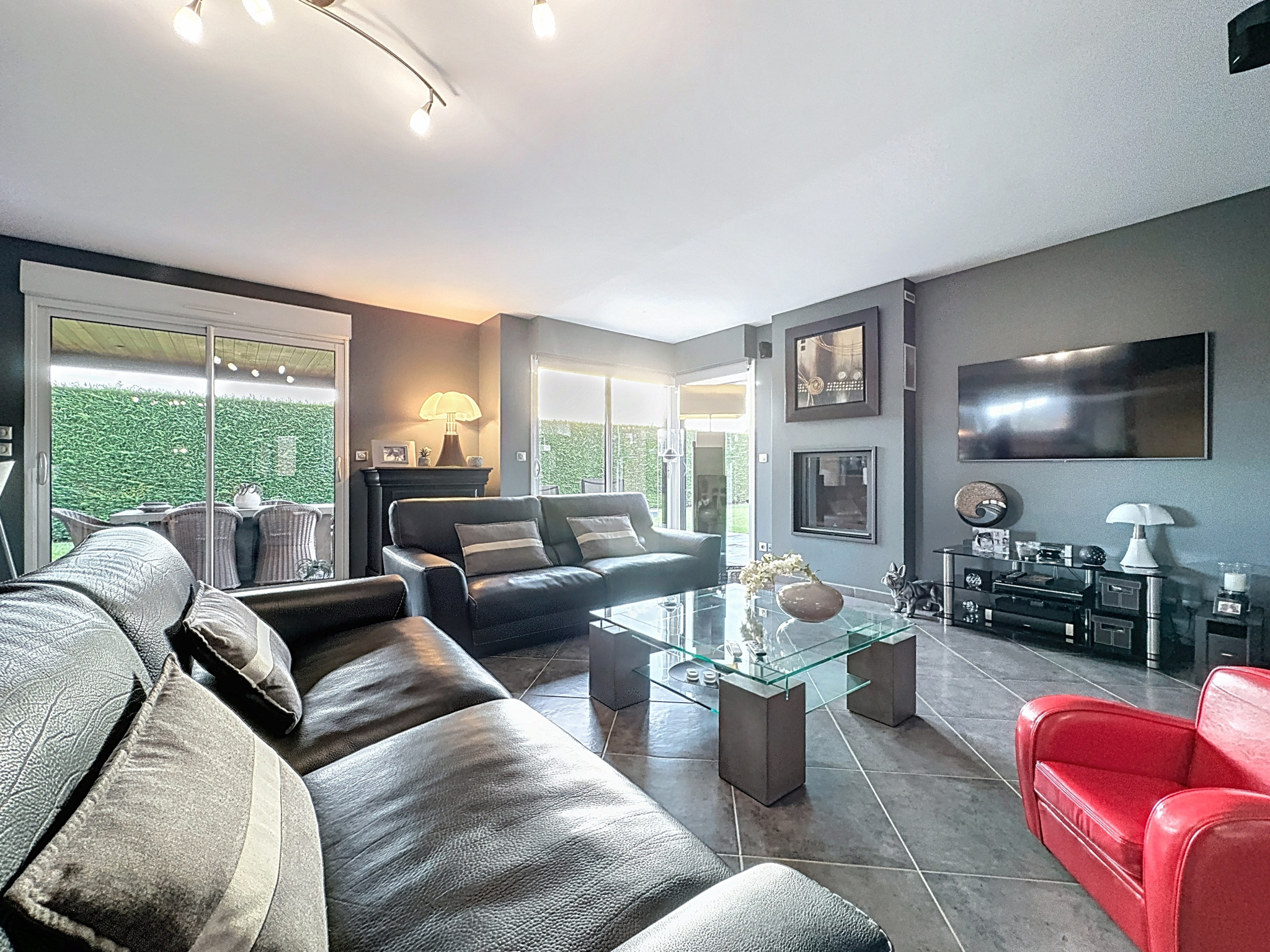 En exclusivité ! Située au calme, superbe maison contemporaine d'une surface habitable de 180m2, bâtie sur une parcelle de + de 1700m2, comprenant au rez-de-chaussée un vaste hall d'entrée, un salon séjour lumineux de 52m2 avec cheminée insert, ouvert sur une cuisine équipée de 20m2, un cellier, une chambre et une salle de bains.