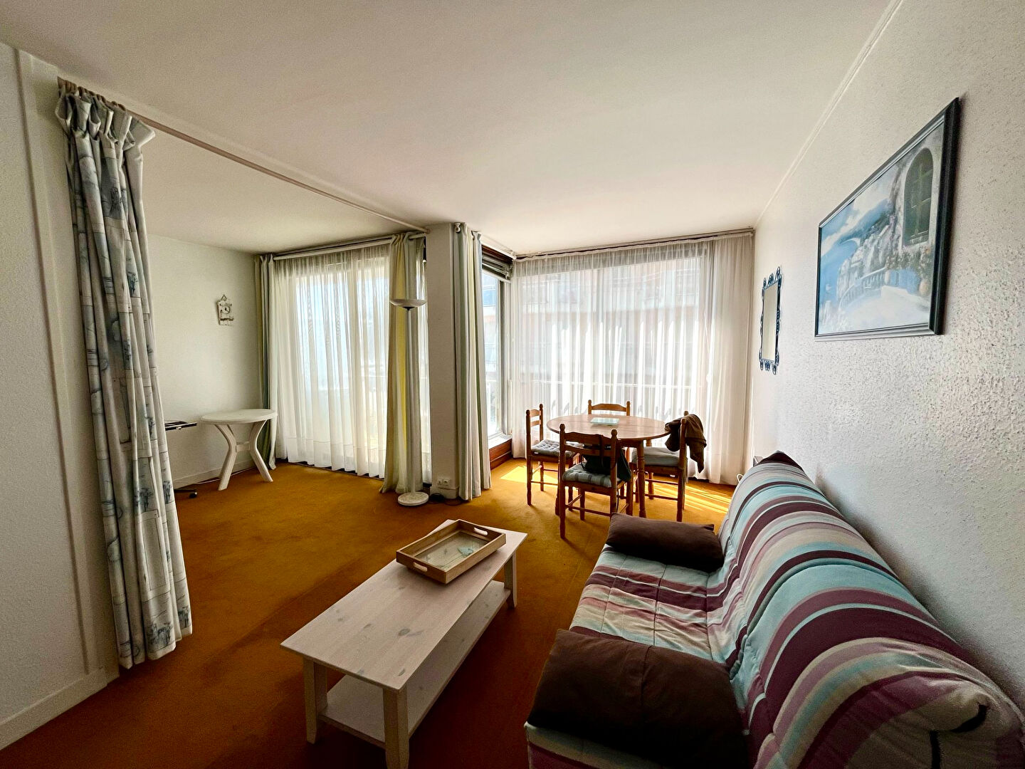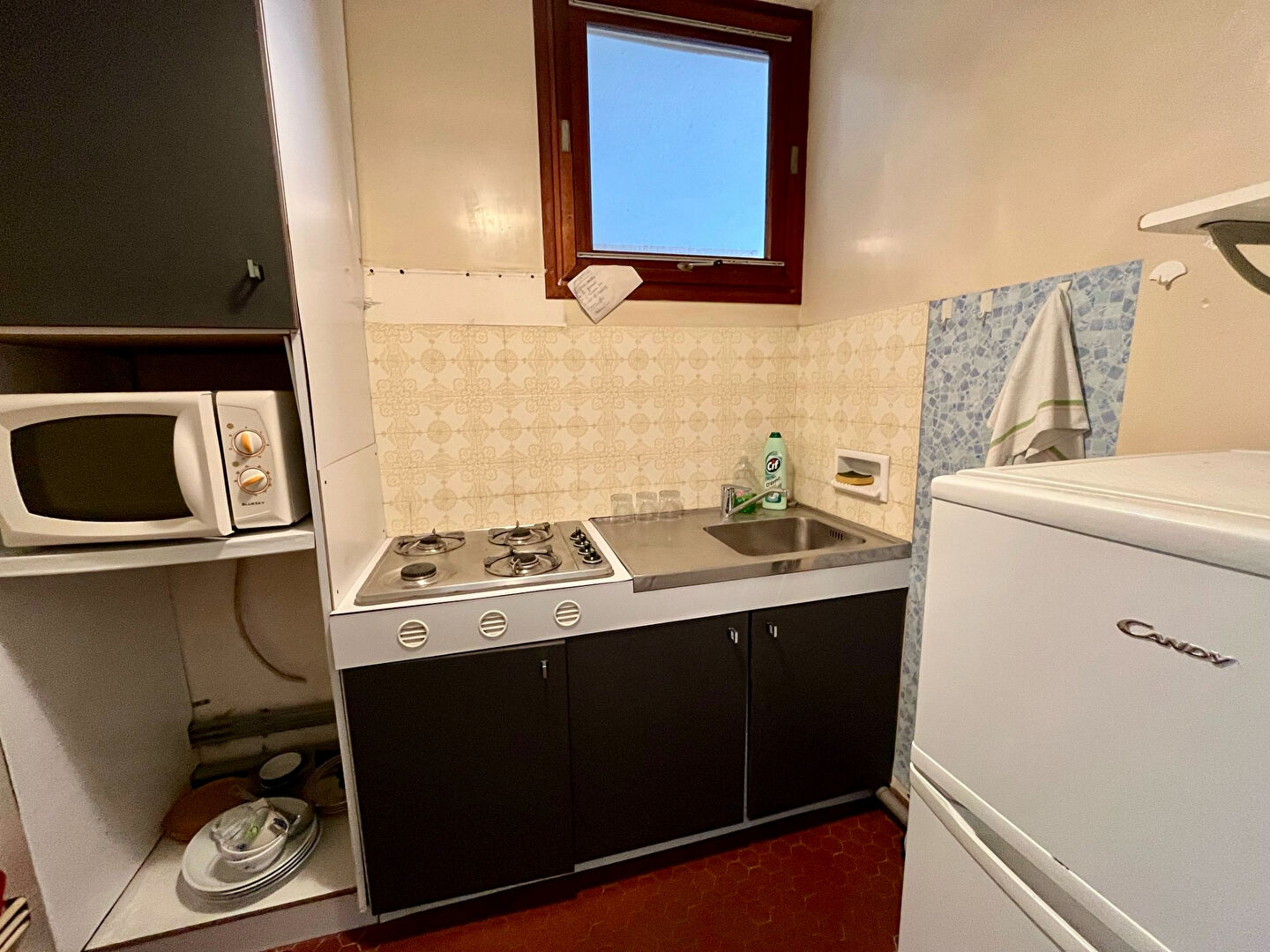 En rez de chaussée surélevé, dans une copropriété avec ascenseur, cet appartement comprend , une entrée, une pièce de vie donnant sur le balcon avec une vue mer, une chambre, une cuisine, une salle de bains, toilettes.