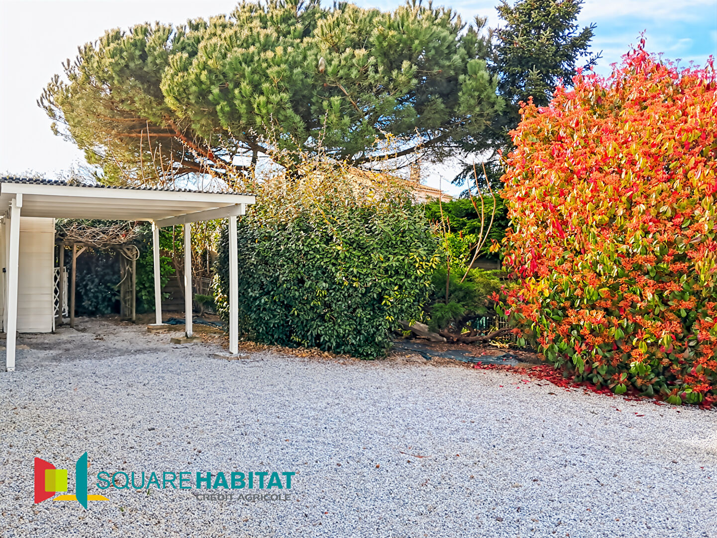 Un jardin paysagé de 1 617 m² sans vis-à-vis avec terrasse, pergola et piscine.