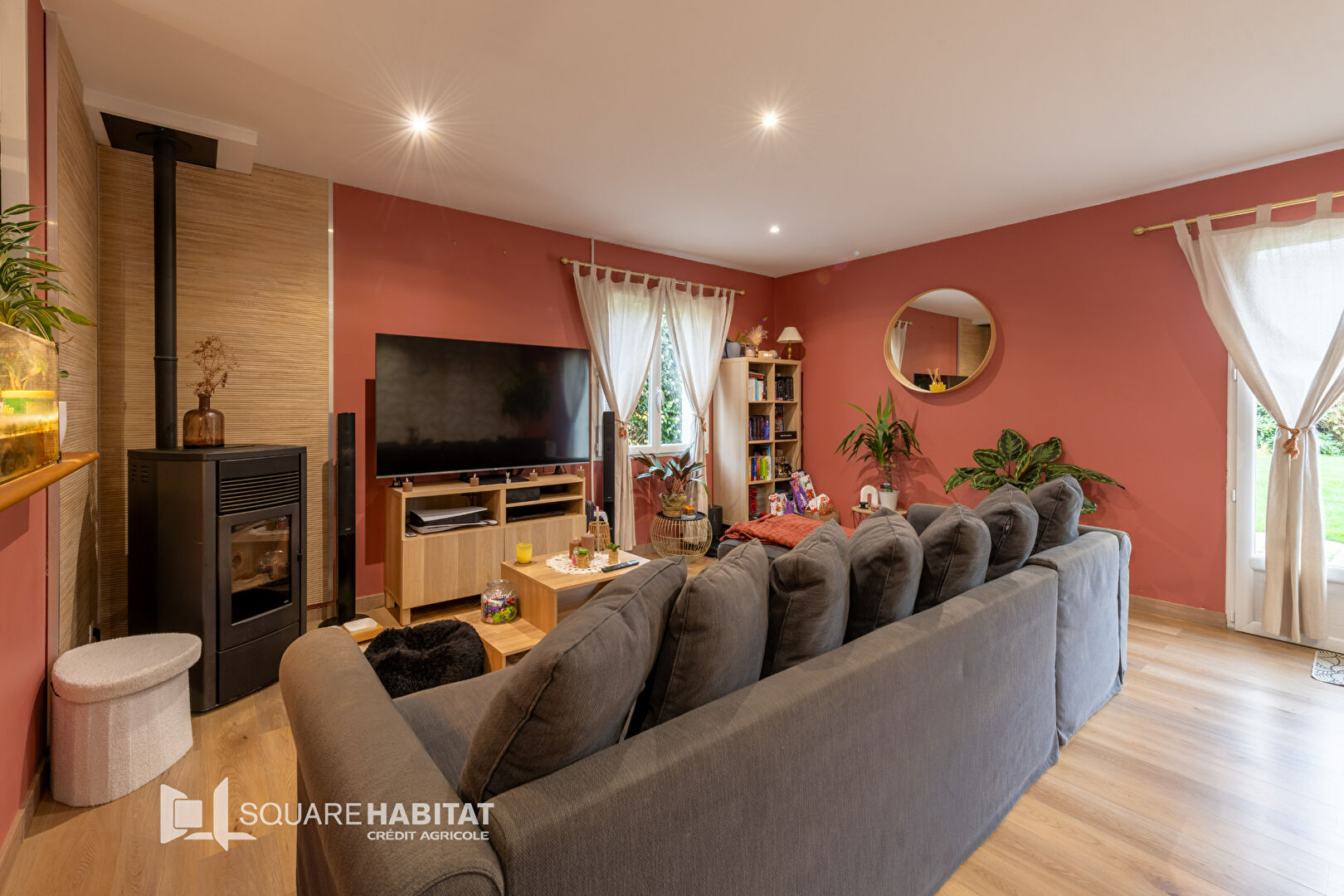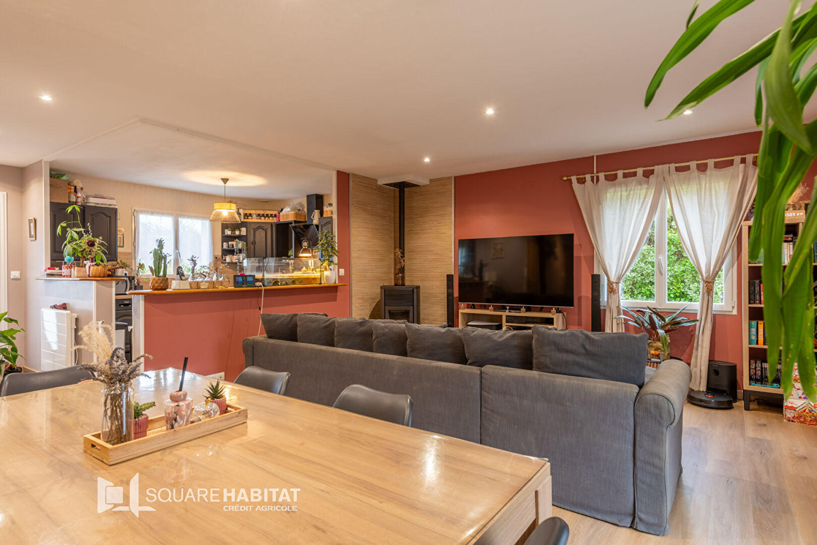 Cette maison lumineuse offre : une entrée , une cuisine ouverte sur le séjour créant un espace de vie convivial et chaleureux grâce au poêle à granulé, 3 chambres, une salle d 'eau, wc.