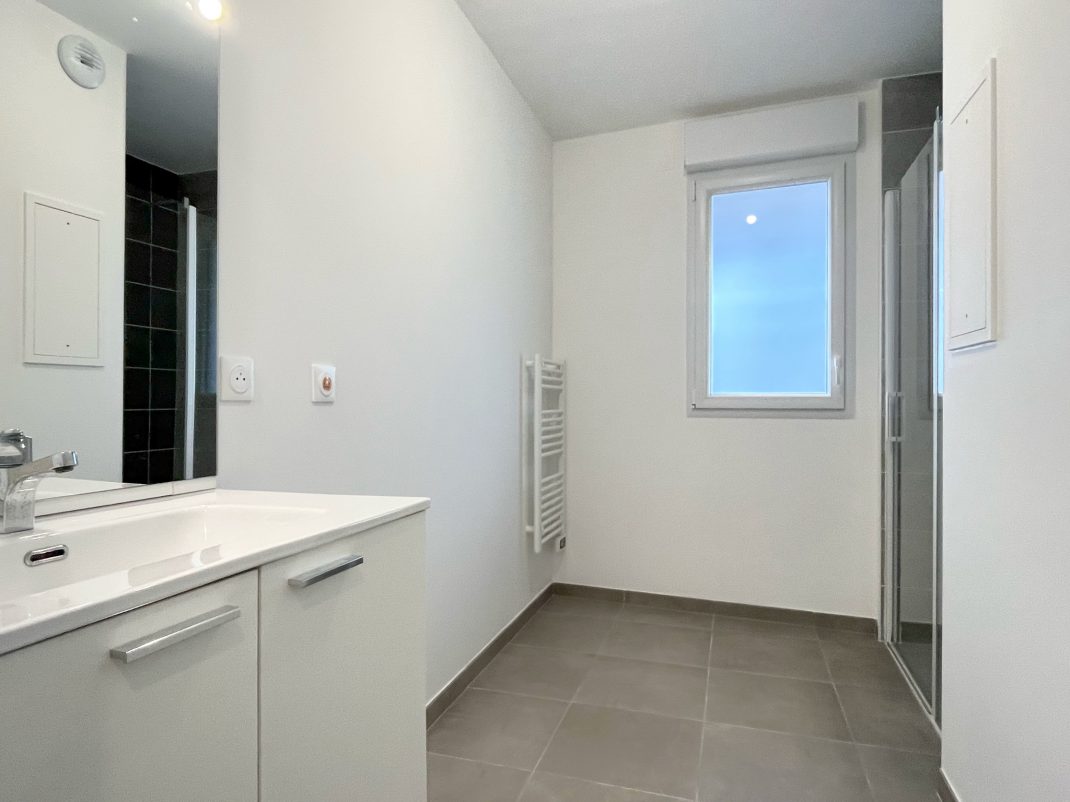 L'appartement se compose d'une entrée, une pièce de vie avec accès à la loggia de 37.48m2, orientée idéalement sud-ouest et sud-est, 2 chambres dont une avec placard et accès sur l'exterieur privatif. Une salle de bain avec douche. Un wc séparé. Pour compléter le bien, vous profiterez d'une cave et de 1 place de parking privative en sous-sol de la résidence. Chauffage gaz collectif. Construction aux normes RT 2012. Frais de notaire réduits.
